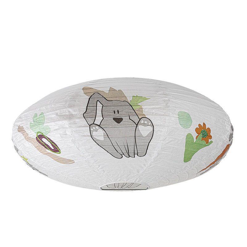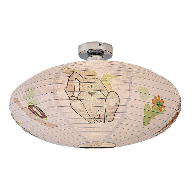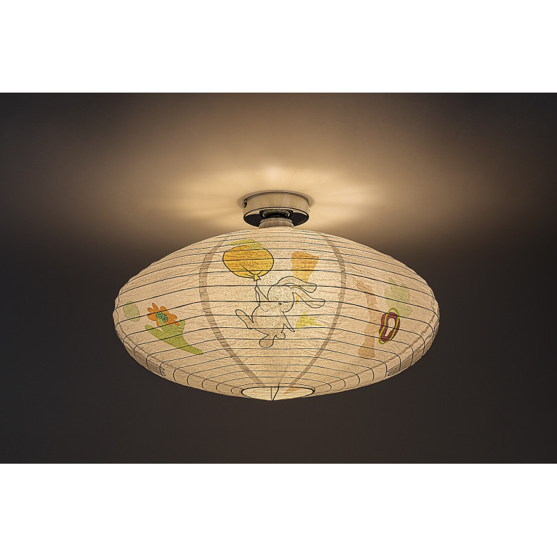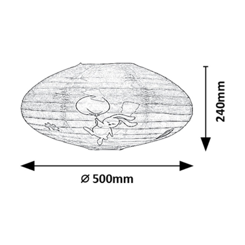 Lampa de tavan din hârtie pentru copii Rabalux Hopply este un model conceput de Rabalux. Este recomandată celor care doresc să facă camera copiilor și mai primitoare cu motive drăguțe și vesele. Lampa are o formă rotunjită și aplatizată, este realizată din hârtie și decorată cu un model adorabil cu iepuraș și balon, care cu siguranță va cuceri inima ocupantului camerei. Culorile predominante ale motivelor sunt nuanțele de portocaliu, maro și gri, care sunt plăcute și liniștitoare pentru ochi și radiază căldură. Lampa pentru copii poate fi utilizată cu un singur bec cu o putere de până la 40 W. Dacă dorești să îmbunătățești atmosfera confortabilă și intimă, alege un bec care emite lumină albă caldă. Lampa pentru camera copiilor este furnizată fără soclu și sursă de lumină.