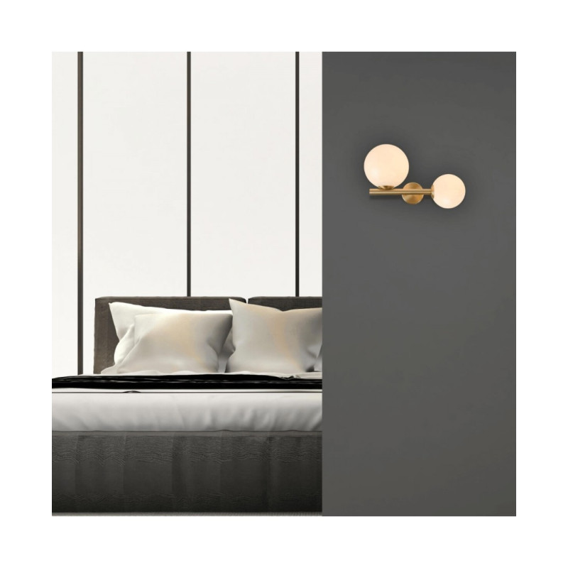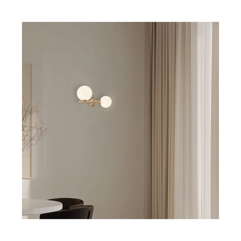 Aplica 1995 este o lampă decorativă de interior modernă și elegantă. Fabricată din metal cu finisaj auriu mat și sticlă opală, oferă o iluminare caldă și uniformă. Are dulii pentru un bec E14 (maxim 15W) și un bec G9 (maxim 7W), care nu sunt incluse. Cu o înălțime de 21 cm și o greutate de 2 kg, este un plus elegant pentru camerele de zi, dormitoare și zonele de ospitalitate, adăugând lux și atemporalitate spațiului.