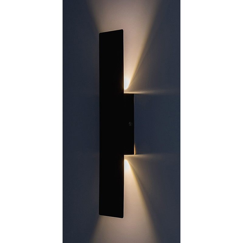 Lampa modernă de perete indirectă Ampel este recomandată în special pentru camera de zi sau dormitor, pentru cei care doresc o iluminare captivantă. Elementul dreptunghiular lung al lămpii negre, realizat din metal cu forme unghiulare, umbrește abajururile, astfel încât lumina este direcționată în principal spre perete. Modelul care imită forme de cărămidă luminează în sus și în jos, iar corpul lămpii care conține sursele de lumină împlinește și rolul de bază decorativă. Cu designul său simplu și curat, acest model montat pe perete se potrivește bine în aranjamentul multor case moderne. Ampel are o sursă de lumină LED încorporată aparținând clasei energetice G, cu o putere de 6 W, o luminozitate de 470 de lumeni cu abajur, 580 de lumeni fără abajur și cu o durată de viață de 20.000 ore. Sursa de lumină de 3000 K emite lumină albă caldă, care ajută la crearea unei atmosfere intime și primitoare, fiind ideală pentru relaxare. Dimensiunile lămpii indirecte sunt următoarele: înălțime 400 mm, lățime 80 mm, distanța față de perete 40 mm.