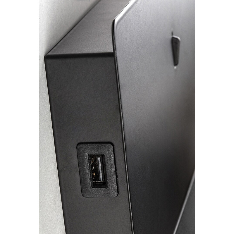 Lampa de perete practică și modernă Aranzo este o alegere bună atât pentru camera de zi, dormitor sau camera de studiu. Modelul realizat din metal de culoare neagră nu numai oferă o soluție de iluminat, dar funcționează și ca raft și încărcător: elementul orizontal al Aranzo în formă de L găzduiește o lampă cilindrică mică și oferă un loc sigur pentru a vă ține telefonul mobil în timpul încărcării. Partea montată pe perete a lămpii, care este atașată la baza decorativă, are un port USB, astfel încât vă puteți încărca dispozitivul mobil pe timp de noapte sau la serviciu, avându-l la îndemână. Lampa de perete are o sursă de lumină LED încorporată aparținând clasei energetice G, cu o putere de 6 W, o luminozitate de 230 de lumeni cu abajur, 365 de lumeni fără abajur și cu o durată de viață de 20.000 ore. Sursa de lumină de 3000 K emite lumină albă caldă. Aranzo are o lățime de 250 mm, înălțime 130 mm, distanța față de perete 150 mm, diametrul lămpii 70 mm.