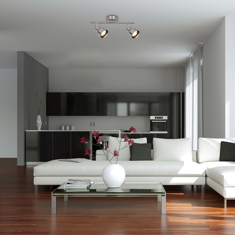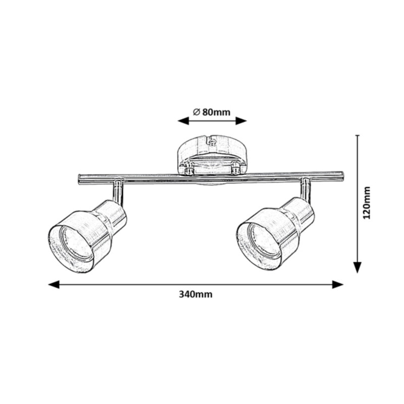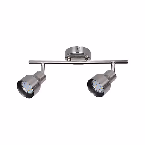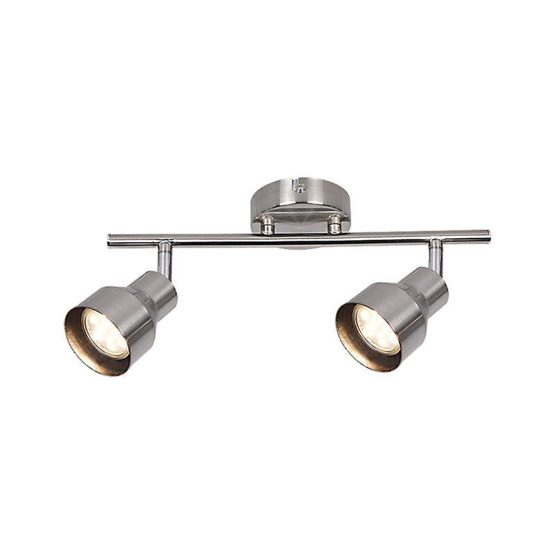 Spotul modern Blake cu 2 becuri poate fi o alegere excelentă pentru diverse încăperi din apartamentul dvs.: îl puteți monta în camera de zi, sufragerie, bucătărie sau chiar bucătărie. Această lampă complet din metal, culoare crom satinat, poate fi montată pe perete cu ajutorul unei baze decorative mari, rotunde. Capetele flexibile sunt poziționate pe bara de susținere orizontală, conectată la baza decorativă. Lampa Blake poate fi folosită cu două becuri de maximum 50 W fiecare. Tipul de soclu este GU10. În funcție de preferințe și locul instalării, puteți alege o sursă de iluminat albă caldă sau naturală. Dimensiunile spotului cu 2 becuri sunt: lățime 340 mm, înălțime 145 mm, lungime 120 mm. Acest model este furnizat fără surse de iluminat.