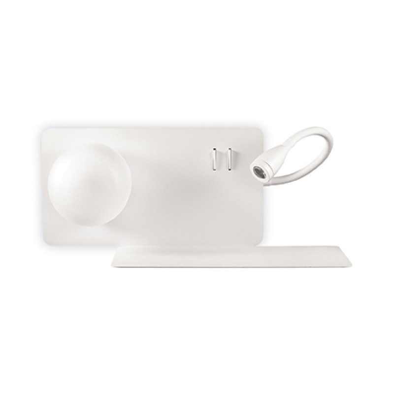 - aplica LED moderna cu reader LED directionabil cu dublu intrerupator integrat si port USB pentru incarcare telefon si suport
