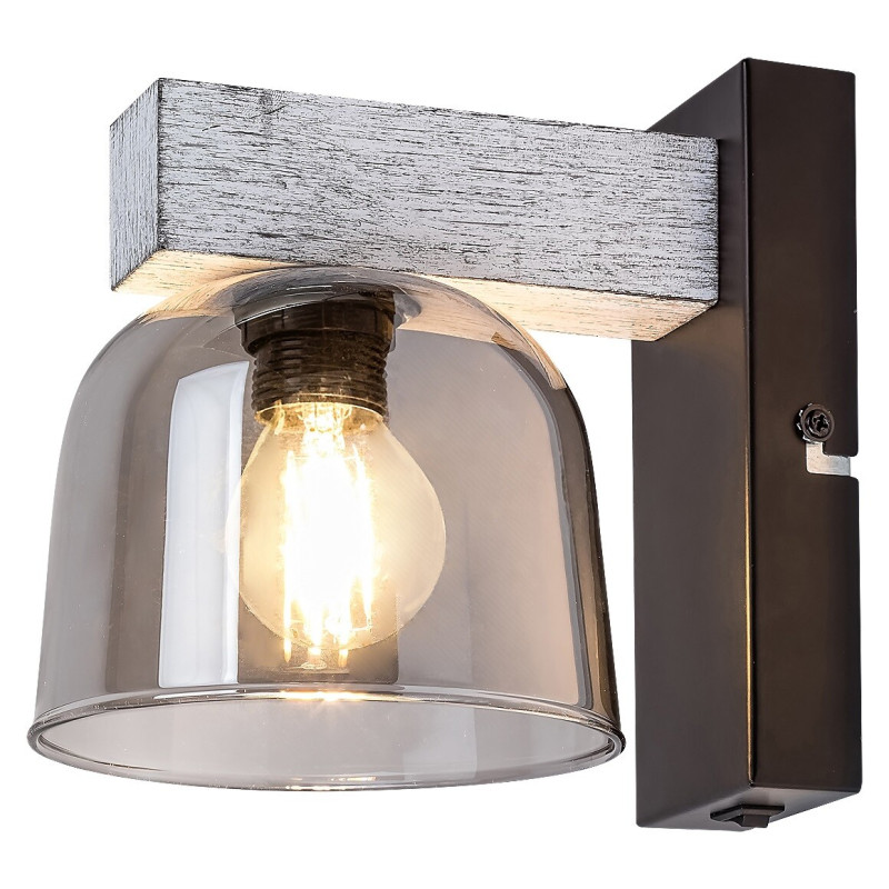 Aplica de perete modernă Cardamom este o completare cu caracter pentru camera de zi, sufragerie sau dormitor. Lampa este construită din metal și lemn și poate fi montată pe perete cu ajutorul unei baze pătrate, decorative, negru mat. Elementul care susține capul lămpii are culoarea de stejar argintiu, iar abajurul în formă de clopot este realizat din sticlă colorată. Cardamom poate fi folosită cu un singur bec de maximum 40 W. Tipul de soclu este E14. În funcție de preferințe, puteți alege o sursă de iluminat albă caldă sau naturală. Aplica de perete poate fi operată cu ajutorul unui comutator basculant amplasat pe baza decorativă. Dimensiunile lămpii sunt: lățime 150 mm, diametrul abajurului 120 mm, adâncime 165 mm. Acest model este furnizat fără sursă de iluminat.