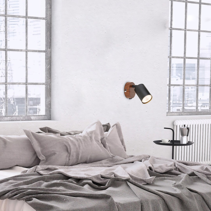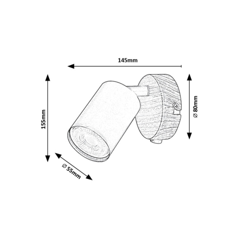 Reprezentând stilul industrial, spotul Edmund este o completare elegantă pentru camera de zi sau dormitor. Capul metalic este conectat la o bază decorativă rotundă, în culoarea stejarului, iar abajurul negru, cilindric, cu bare adăpostește un soclu GU10. Această aplică poate fi folosită cu un bec de maximum 25 W. În funcție de preferințe, puteți alege o sursă de iluminat albă caldă sau naturală pentru lampă. Dacă așezați lampa Edmund în dormitor, recomandăm un bec cu lumină albă caldă, care ajută la crearea unei atmosfere intime, plăcute. Acest spot poate fi operat cu ajutorul unui comutator basculant amplasat pe baza decorativă. Dimensiunile aplicei de perete sunt: lățime 80 mm, înălțime 155 mm, diametrul abajurului 55 mm, adâncime 145 mm, diametrul de montare 80 mm. Acest model este furnizat fără sursă de iluminat.
