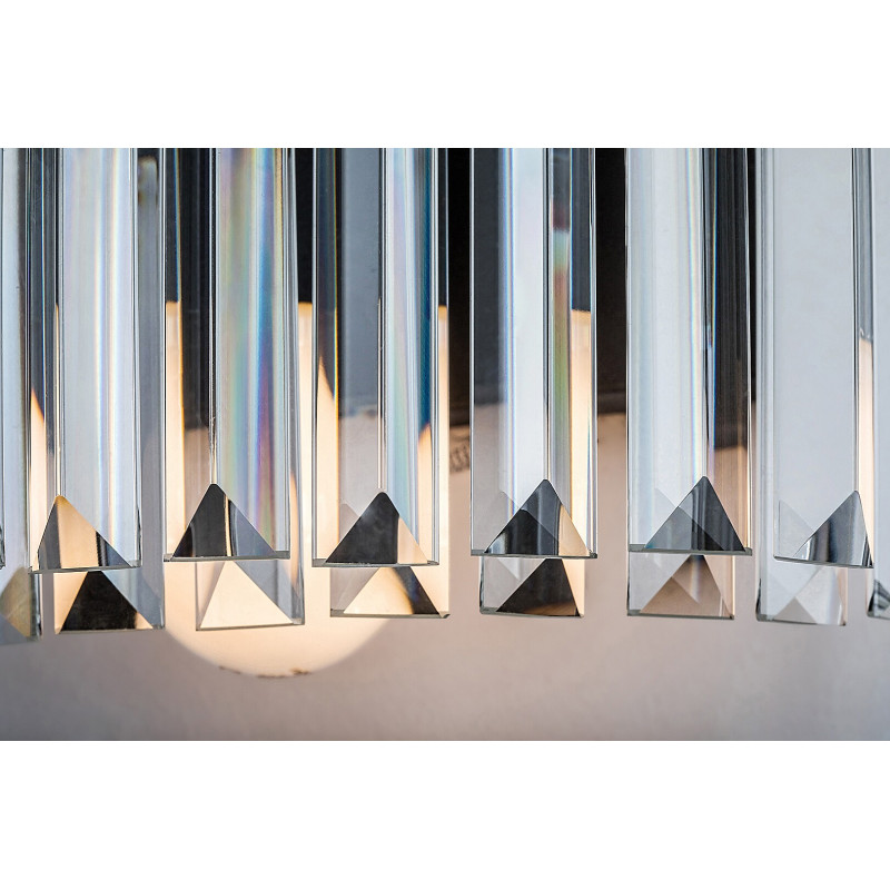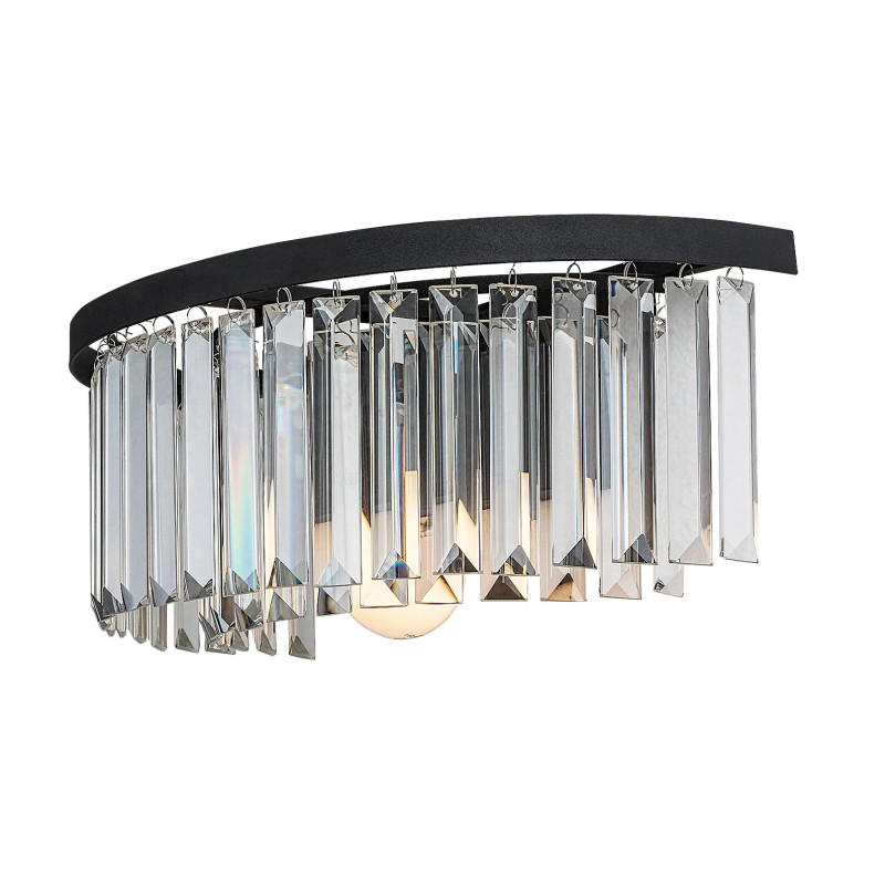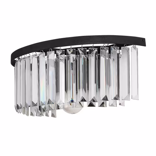 Lampa de perete elegant Eloisa, în stil clasic, este recomandat în primul rând pentru camera de zi sau dormitor. Corpul din metal negru al lămpii este completat de pandantive din sticlă transparentă care acoperă sursa de lumină ca o perdea semicirculară, conferind acestui model un aspect de candelabru. Eloisa poate fi montată pe perete cu ajutorul unei baze decorative negre, întreaga lampă formând un semicerc. Lampa de perete poate fi folosită cu o singură sursă de lumină cu o putere de până la 25 W, tip soclu E27. În funcție de gustul Dvs. și de locul de instalare, puteți alege pentru acest model strălucitor un bec cu lumină albă caldă sau naturală. Dacă îl instalați în dormitor, se recomandă utilizarea unei surse de lumină albă caldă care facilitează crearea unei atmosfere intime și familiale, este relaxantă pentru ochi și ușurează destinderea înainte de culcare. Dimensiunile lămpii de perete Eloisa sunt următoarele: lățime 400 mm, înălțime 145 mm, distanța față de perete 210 mm. Acest model se livrează fără sursă de lumină.