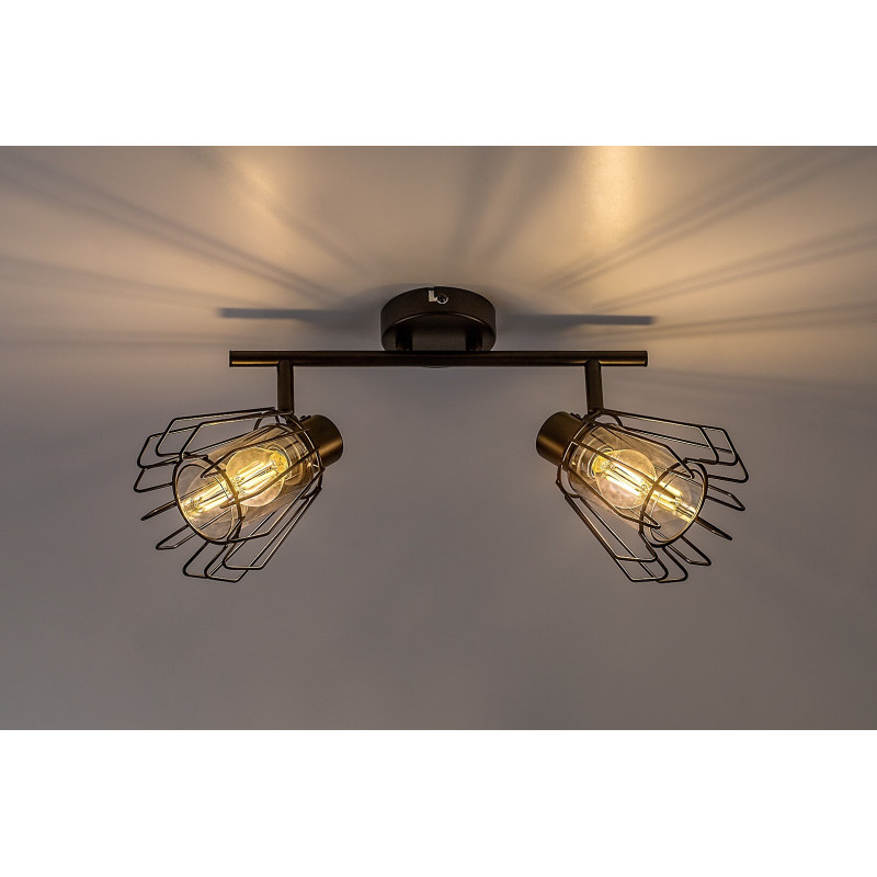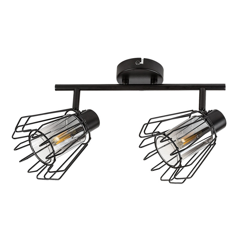 Rabalux Emerencia spot de tavan cu 2 becuri este recomandat celor care preferă lămpile cu un aspect unic în stil industrial. Acest model are abajururi cu bare și este realizat din metal de culoare neagră. În interiorul capetelor lămpii se află abajururi cilindrice din sticlă fumurie, înconjurate de abajururi externe cu bare în formă de A. Spotul poate fi fixat pe tavan prin intermediul unei baze decorative mici și rotunde, de care este atașată o tijă cilindrică ce susține ambele capete de lampă. Lampa de tavan este o alegere ideală pentru living, bucătărie, sufragerie sau dormitor. Poate fi utilizată cu două surse de lumină, fiecare cu o putere de până la 40 W. Tipul de soclu este E14. Spotul este echipat cu capete de lampă flexibile și practice, astfel încât să poți direcționa lumina după cum dorești. Acest model este livrat fără surse de lumină.
