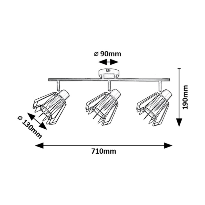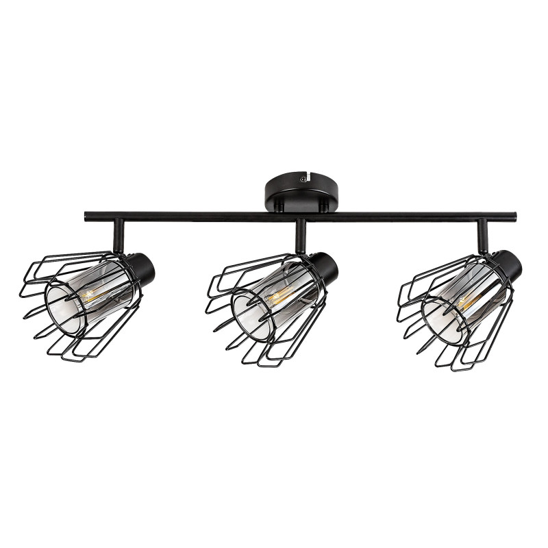 Rabalux Emerencia spot de tavan cu 3 becuri este recomandat celor care preferă lămpile cu un aspect unic în stil industrial. Acest model are abajururi cu bare și este realizat din metal de culoare neagră. În interiorul capetelor lămpii se află abajururi cilindrice din sticlă fumurie, înconjurate de abajururi externe cu bare în formă de A. Spotul poate fi fixat pe tavan prin intermediul unei baze decorative mici și rotunde, de care este atașată o tijă cilindrică ce susține capetele lămpii. Lampa de tavan este o alegere ideală pentru living, bucătărie, sufragerie sau dormitor. Poate fi utilizată cu trei becuri, fiecare cu o putere de până la 40 W. Tipul de soclu este E14. Spotul este prevăzut cu capete de lampă flexibile și practice, care permit iluminarea eficientă a încăperii. Acest model este livrat fără surse de lumină.