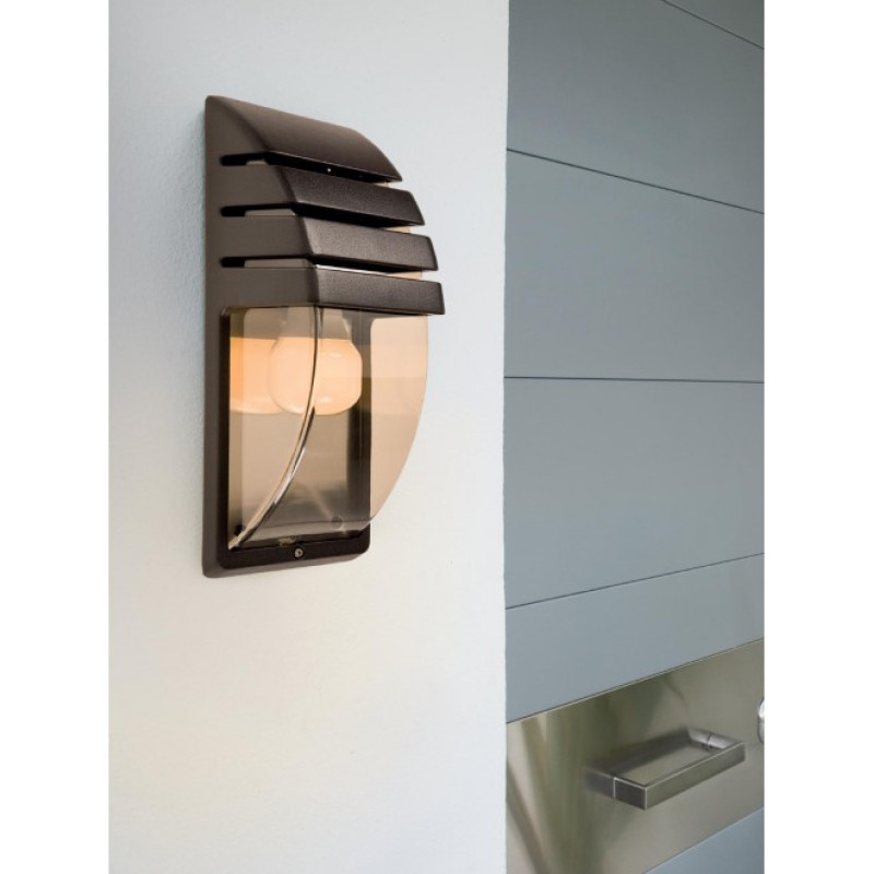 Aplică pentru exterior din aluminiu turnat, culoare negru mat, dispersor din policarbonat fumuriu. IP44