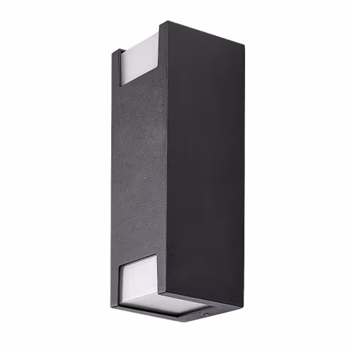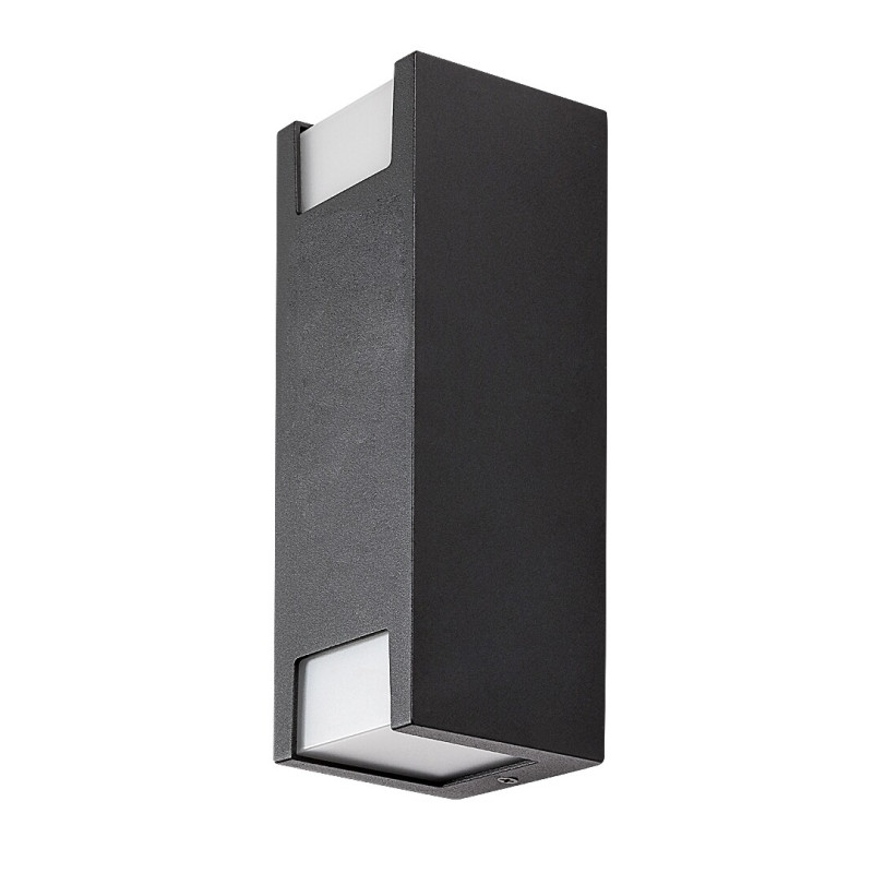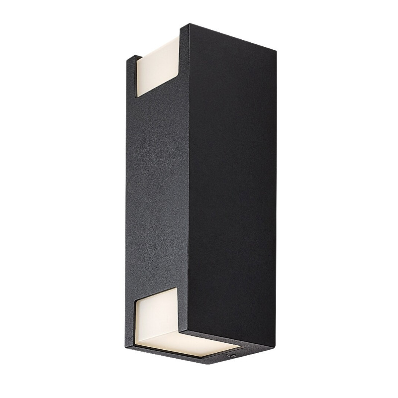Lampa de perete de exterior Cernon, în stil modern, este recomandată în primul rând pentru terasă sau pe peretele exterior al casei. Modelul negru cu un design minimalist va fi cu siguranță pe placul dvs. dacă sunteți în căutarea unei lămpi care se concentrează pe funcționalitate și se integrează aproape imperceptibil în mediul înconjurător. Materialul lămpii Cernon sub formă elongată de cărămidă este aluminiu, în timp ce abajururile albe așezate ca ferestre în partea inferioară și superioară a corpului de iluminat sunt din plastic. Lampa de perete poate fi folosită cu două surse de lumină, fiecare cu o putere de până la 7 W, tip soclu GU10. Dimensiunile lămpii de exterior sunt următoarele: lățime 75 mm, înălțime 210 mm, distanța față de perete 80 mm. Lampa beneficiază de protecția IP44, care garantează că aceasta este protejată împotriva pătrunderii obiectelor solide mai mari de 1 mm, precum și împotriva stropirii cu apă din orice direcție. Acest model se livrează fără surse de lumină.