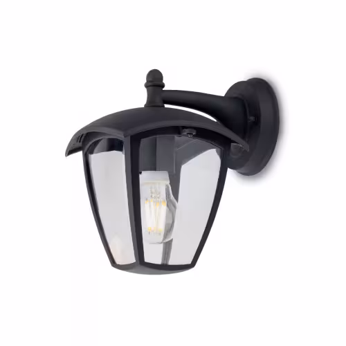 Aplică pentru exterior, structură din aluminiu turnat sub presiune, vopsită in camp electrostatic negru mat, dispersor din policarbonat transparent