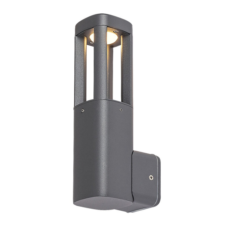 Lampa de perete pentru exterior Kalisz, în stil modern, este o alegere excelentă pentru terasă sau peretele exterior al casei, dacă sunteți în căutarea unei lămpi cu un aspect discret, dar și durabilă, care poate rezista împotriva condițiilor meteorologice dure. Modelul gri antracit este fabricat din aluminiu cu o formă dreptunghiulară rotunjită, iar abajurul este din plastic alb. Mica bază decorativă este atașată la partea inferioară a lămpii. Lampa de perete are o sursă de lumină LED încorporată aparținând clasei energetice G, cu o putere de 7 W, o luminozitate de 250 de lumeni cu abajur, 700 de lumeni fără abajur și cu o durată de viață de 30.000 ore. Sursa de lumină de 3000 K emite lumină albă caldă. Dimensiunile lămpii de exterior sunt următoarele: lățime 70 mm, înălțime 250 mm, distanța față de perete 110 mm, diametru de instalare 70 mm. Kalisz are o protecție IP54, care garantează că aceasta este protejată împotriva prafului, precum și împotriva stropirii cu apă din orice direcție. Intervalul ideal de temperatură de funcționare: -30 °C până la 50 °C.
