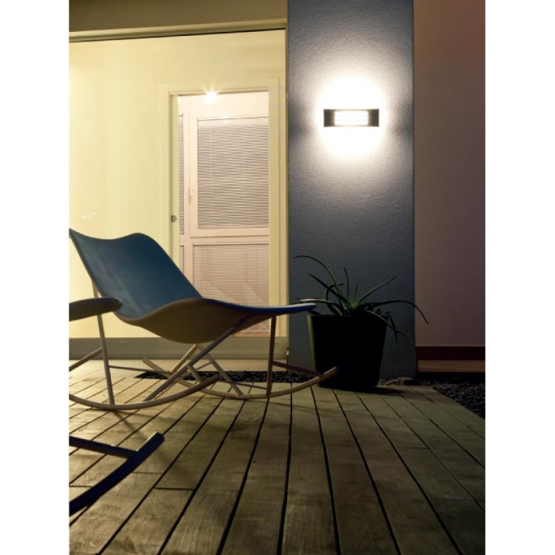 Aplică pentru exterior, corp din policarbonat opal cu parte frontală din inox. IP44