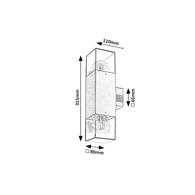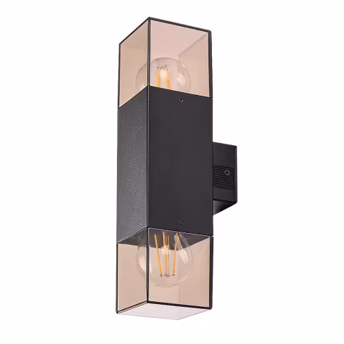 Lampa de perete de exterior Loanda, în stil modern, poate fi instalată pe terasă sau pe peretele exterior al casei. Modelul din aluminiu negru se caracterizează prin forme geometrice, iar cele două capete de lampă orientate în sus și în jos sunt completate de câte un abajur cubic din plastic colorat. Lampa poate fi fixată de perete cu ajutorul unei baze decorative unghiulare. Loanda poate fi folosită cu două surse de lumină, fiecare cu o putere de până la 60 W, tip soclu E27. Deoarece sursele de lumină sunt clar vizibile prin abajururile colorate, puteți face acest model și mai interesant pentru utilizarea pe terasă, folosindu-l cu becuri estetice, cu o formă diferită de cea tradițională. Dimensiunile lămpii de exterior sunt următoarele: lățime 80 mm, înălțime 315 mm, distanța față de perete 110 mm, diametru de instalare 65 mm. Lampa are o protecție IP54, care garantează că aceasta este protejată împotriva prafului, precum și împotriva stropirii cu apă din orice direcție. Lampa de exterior de perete Loanda se livrează fără surse de lumină.