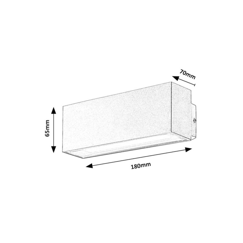Lampa de perete de exterior Mataro, în stil modern, este recomandată în primul rând pentru terasă sau pe peretele exterior al casei. Acest model alb vă va cuceri cu siguranță dacă preferați lămpile de exterior care, prin designul lor curat și simplu, se integrează aproape invizibil în mediul înconjurător. Mataro este fabricat din aluminiu sub forma unui corp de cărămidă alungită cu un abajur din sticlă albă și are încorporată o sursă de lumină LED cu clasa energetică F. Sursa de lumină LED încorporată are o putere de 10 W, o luminozitate de 970 lumeni cu abajur, 1200 lumeni fără abajur și o temperatură de culoare de 4000 K. Durata de viață a sursei de lumină, care emite o lumină albă naturală este de 25.000 de ore. Dimensiunile lămpii de exterior sunt următoarele: lățime 180 mm, înălțime 65 mm, distanța față de perete 70 mm. Lampa are o protecție IP54, care garantează că aceasta este protejată împotriva prafului, precum și împotriva stropirii cu apă din orice direcție. Intervalul ideal de temperatură de funcționare: -20 °C până la 40 °C.