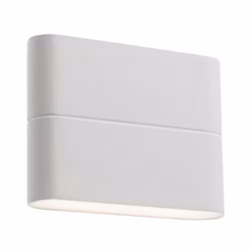 Aplică pentru exterior, echipată cu LED-uri SMD, cu dispersie luminoasă directă/indirectă. Corp din aluminiu turnat sub presiune, vopsit în câmp electrostatic alb mat, dispersoare din policarbonat satinat.