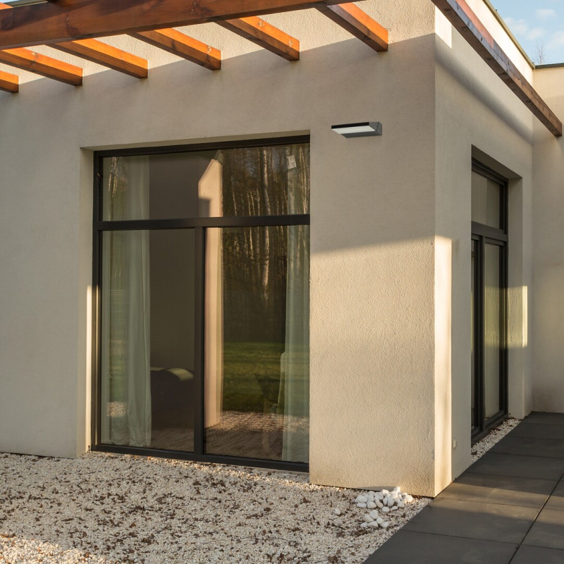 Lampa de perete pentru exterior Senica este recomandată pentru terasă sau pentru peretele exterior al casei pentru cei care caută o lampă cu aspect modern, cu un design curat pentru exterior. Modelul din aluminiu negru este completat de un abajur din plastic alb, iar capul lămpii fiind orientat în jos o face ca să fie o alegere bună, de exemplu, deasupra ușii de intrare. Lampa Senica are o sursă de lumină LED încorporată aparținând clasei energetice G, cu o putere 13 W, o luminozitate de 540 de lumeni cu abajur, 1450 de lumeni fără abajur, precum și cu o durată de viață de 30.000 ore. Sursa de lumină de 4000 K emite lumină albă naturală. Dimensiunile lămpii de exterior sunt următoarele: lățime 170 mm, înălțime 50 mm, distanța față de perete 140 mm. Senica are o protecție IP65, adică este complet închisă și protejată împotriva materialelor solide și murdăriei, precum și protejată împotriva jeturilor de apă de presiune redusă. Această lampă robustă poate rezista la condiții meteorologice extreme, cu un interval ideal de temperatură de funcționare între -30°C și 50°C.