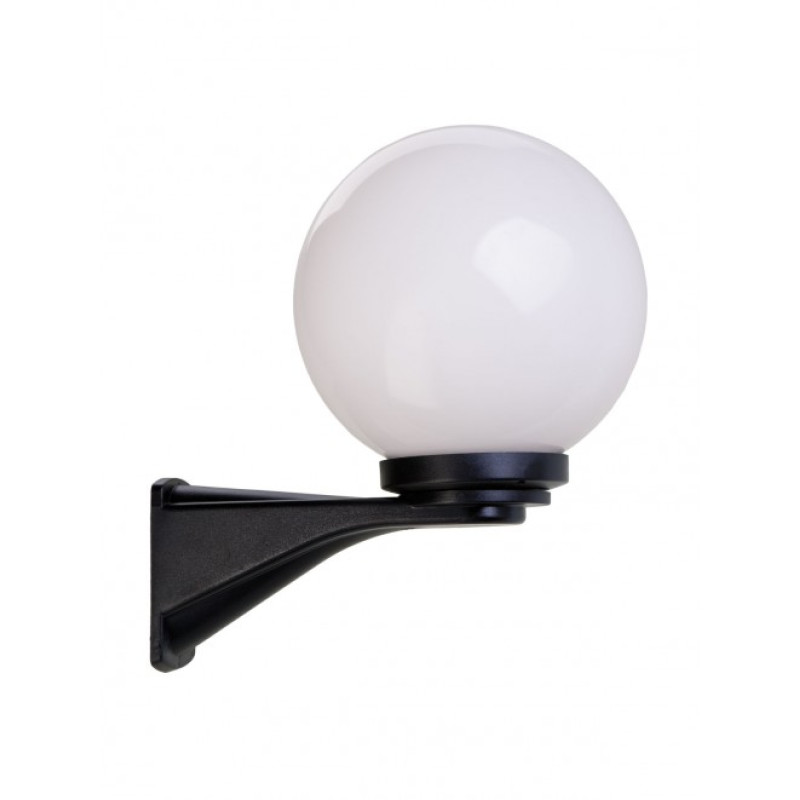 Aplică pentru exterior, braț din policarbonat negru, dispersor sferic din acril opal Ø 200 mm. IP44