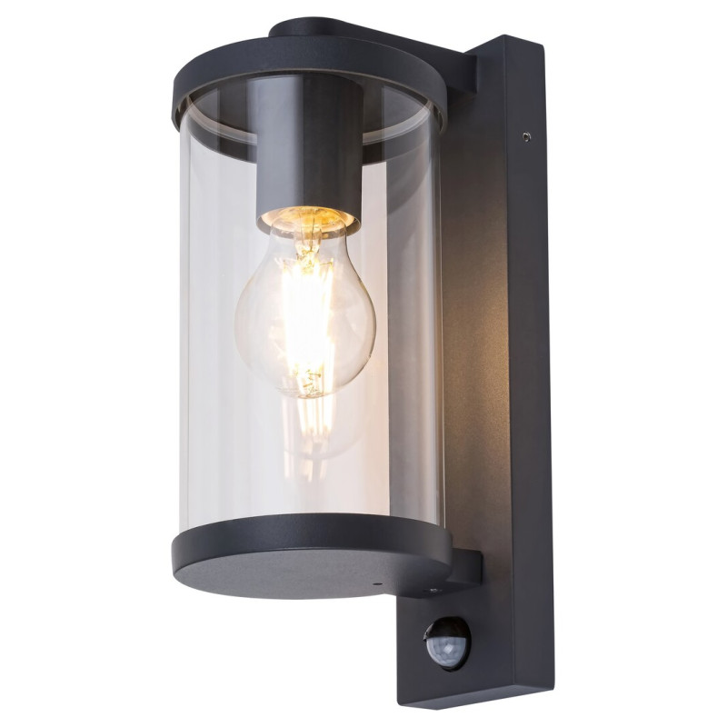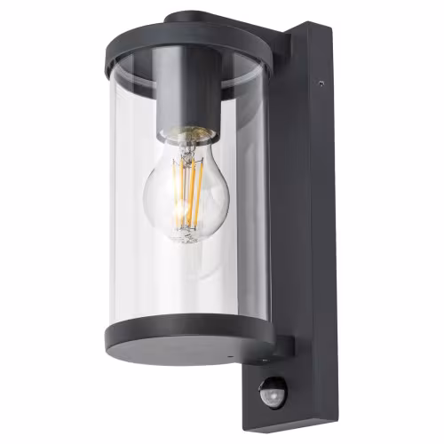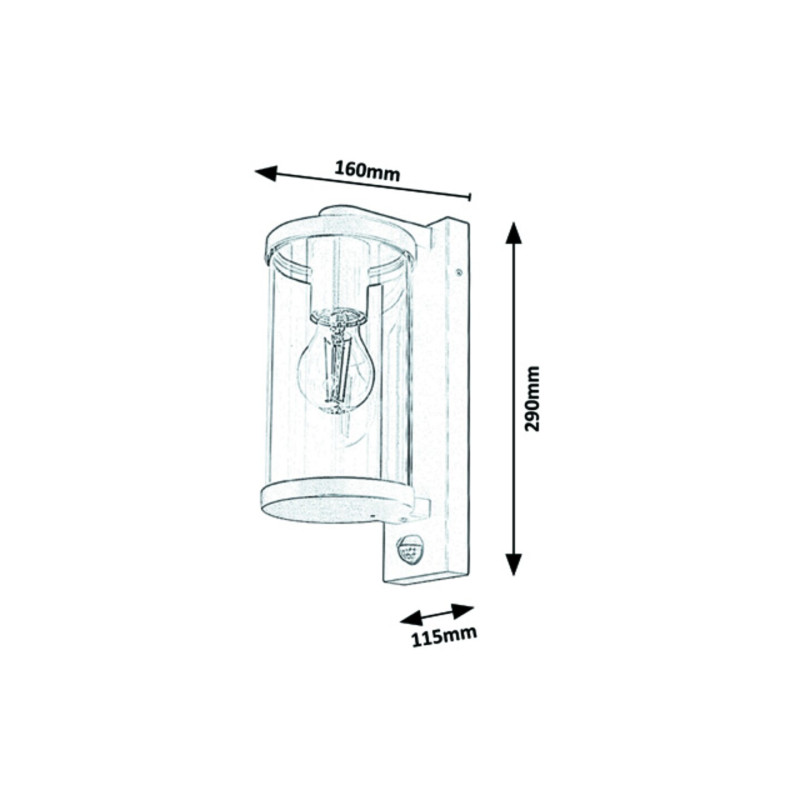 Cu stilul său industrial, lampa de perete de exterior cu senzor de mișcare Silistra se potrivește foarte bine în multe spații de locuit moderne. Corpul de aluminiu de culoarea antracitului este complimentat de un abajur de sticlă cilindric, transparent, care îți permite să observi sursa luminoasă din interior. Silistra are o bază decorativă dreptunghiulară alungită, care ușurează montarea lămpii pe terasă sau pe peretele exterior al casei. Acest model poate fi folosit cu o singură sursă luminoasă de până la 60W, tip de soclu E27. Senzorul detectează mișcarea de la o distanță de 1-12 metri la un unghi de vizualizare de 110°. Lampa are protecție IP44, deci este protejată împotriva intrării obiectelor cu un diametru maxim de 1mm, ca și împotriva stropirii cu apă din orice direcție. Dimensiunile lămpii de perete de exterior cu senzor Silistra sunt următoarele: lățime 115mm, înălțime 290mm, distanță de la perete 160mm. Lampa se livrează fără o sursă luminoasă.