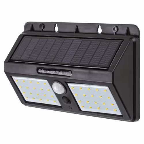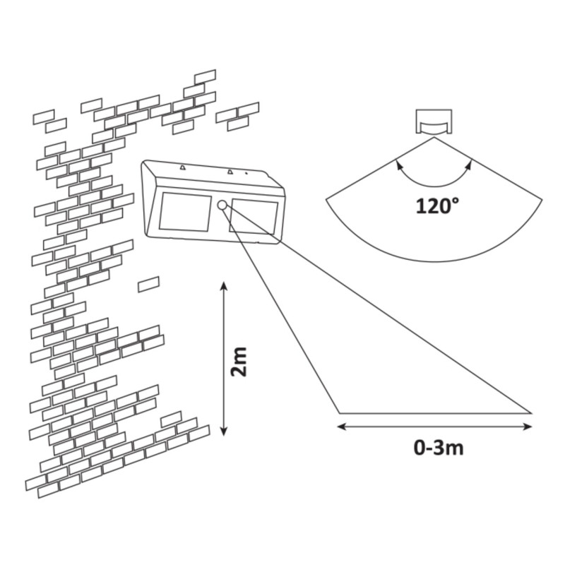 Lampa solară Ostrava cu senzor de mișcare este disponibilă pe culoarea neagră, cu un design funcțional. Lampa de exterior din plastic are încorporată o sursă luminoasă LED care emite o lumină alb natural. Sursa de iluminat are o putere de 2,4W, o intensitate luminoasă de 225 de lumeni, o temperatură de culoare de 4.000K și o durată de viață de circa 5.000 de ore. Ostrava va fi o alegere excelentă pentru terasă sau grădină, dar, de asemenea, o puteți amplasa aproape oriunde pe peretele exterior al casei. Senzorul poate detecta mișcarea de la o distanță de 0-3 m, la 120° unghi de vizualizare. Dimensiunile lămpii solare de exterior sunt următoarele: lățime 190mm, înălțime 115mm, distanță de la perete 45mm. Ostrava are protecție IP44, care garantează că este protejată împotriva intrării obiectelor cu un diametru maxim de 1mm, ca și împotriva stropirii cu apă din orice direcție.