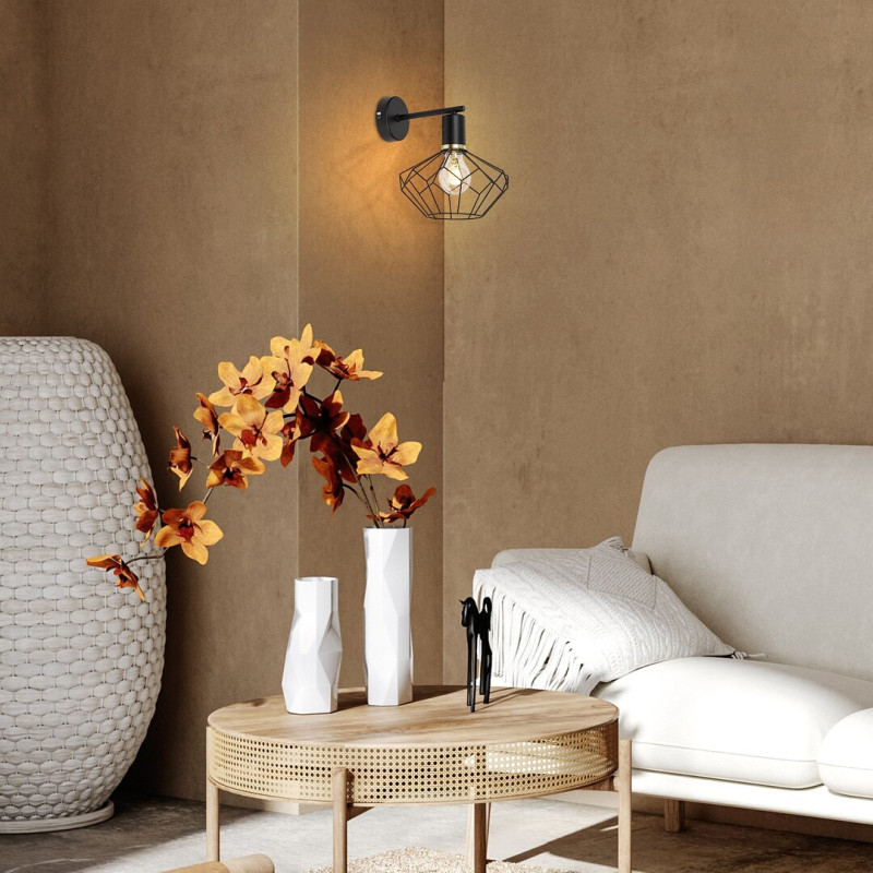 Lampa de perete Fran, în stil vintage, este recomandat în primul rând pentru camera de zi sau dormitor. Lampa neagră mată, realizată în întregime din metal, este completată de un abajur cu zăbrele în de diamant, și poate fi fixată pe perete cu ajutorul unei baze decorative rotunde mici. Capul lămpii care atârnă în jos este conectat la elementul cilindric care se extinde din baza decorativă. Deoarece abajurul permite ca sursa de lumină să fie vizibilă în întregime, merită să alegeți un bec estetic de o formă diferită de cea obișnuită pentru acest model. Fran poate fi utilizat cu o singură sursă de lumină cu o putere de până la 40 W, tip soclu E27. Dacă doriți să folosiți lampa în dormitor, se recomandă utilizarea unei surse de lumină albă caldă pentru a facilita crearea unei atmosfere intime și familiale, precum și relaxarea înainte de culcare. Dimensiunile lămpii de perete Fran sunt următoarele: înălțime 235 mm, diametru abajur 200 mm, distanța lămpii față de perete 255 mm, diametru de instalare 90 mm. Acest model se livrează fără sursă de lumină.