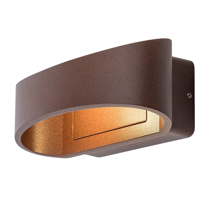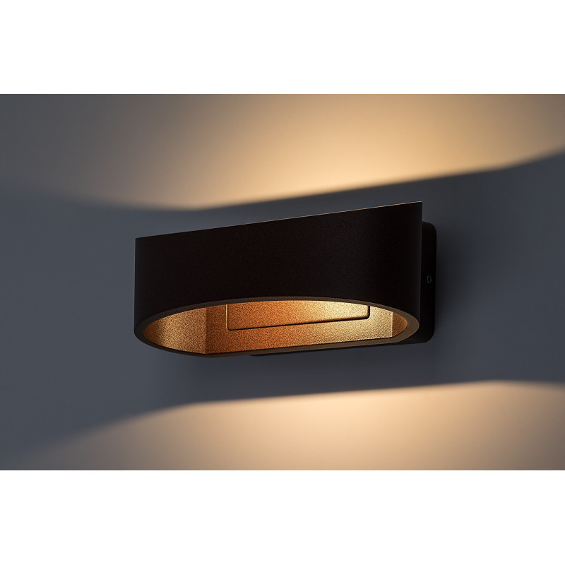 Lampa de perete pentru exterior Rábalux Gerla adaugă un accent elegant fațadei, datorită designului său modern și carcasei distinctive din aluminiu cu nuanțe brune. Forma sa curbată, ovală, împreună cu tonurile calde ale suprafeței interioare, creează un joc decorativ de lumină pe perete, asigurând atât un element estetic plăcut, cât și o orientare sigură în întuneric. LED-ul integrat oferă o lumină uniformă și plăcută, ideală pentru iluminarea intrării, terasei sau balconului, dar și pentru evidențierea unor zone de grădină. Construcția sa durabilă este concepută să reziste la condițiile exterioare, iar stilul curat și modern se potrivește armonios atât cu arhitectura contemporană, cât și cu cea clasică. Gerla este o alegere durabilă și rafinată pentru iluminarea exterioară de perete.