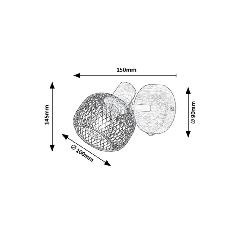 Spotul in stil industrial Grendel este recomandat in primul rand pentru camera de zi, sufragerie, bucătărie sau birou. Capul metalic este conectat la o bază decorativă rotundă, in culoarea fagului, iar abajurul negru mat cu bare adăpostește un soclu E14. Această aplică poate fi folosită cu un bec de maximum 40 W. in funcție de preferințe și incăperea instalării, puteți alege o sursă de iluminat albă caldă sau naturală. Dacă, de exemplu, așezați lampa in dormitor, recomandăm un bec cu lumină albă caldă, care ajută la crearea unei atmosfere plăcute, intime. Acest spot poate fi operat cu ajutorul unui comutator basculant amplasat pe baza decorativă. Dimensiunile lămpii Grendel sunt: lățime 100 mm, inălțime 145 mm, adancime 150 mm, diametru de montare 90 mm. Acest model este furnizat fără sursă de iluminat.