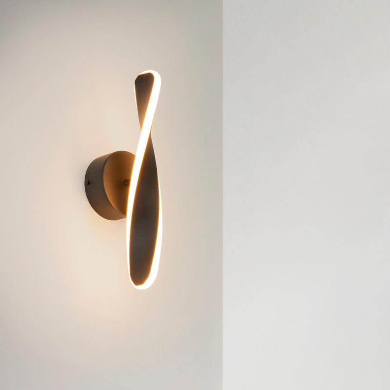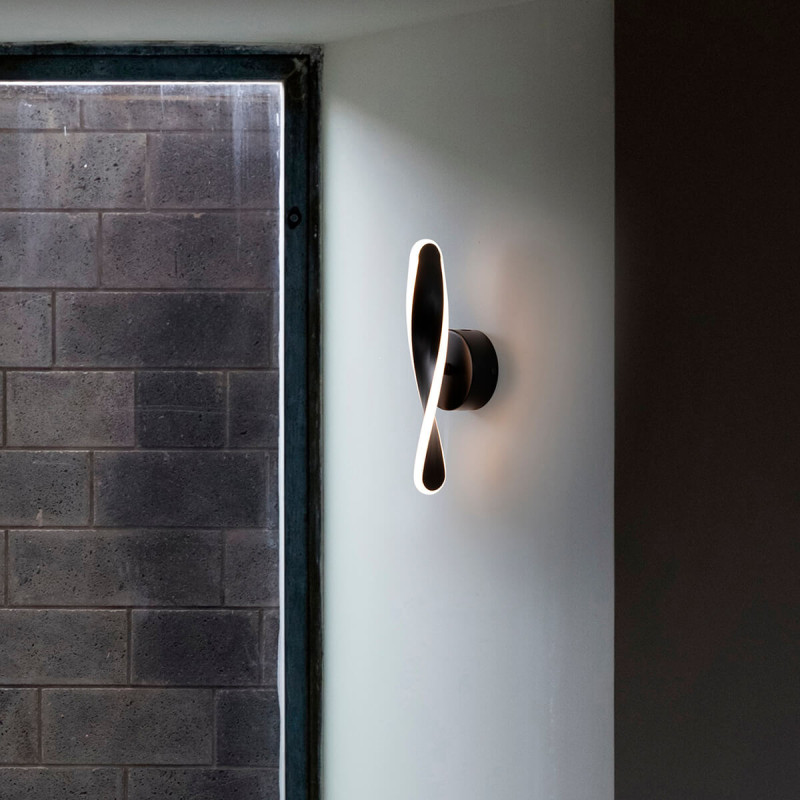 Aplică de perete cu led cu design elicoidal cu finisaj negru. Cu corp din aluminiu și difuzor de silicagel. Această lampă cu led se potrivește perfect în spații mici precum intrări și scări.