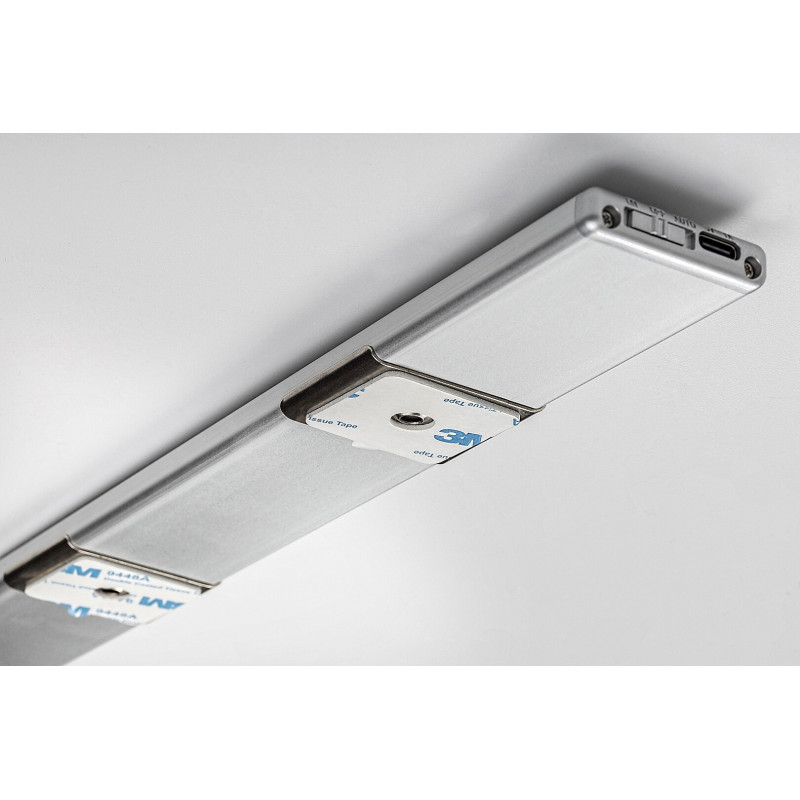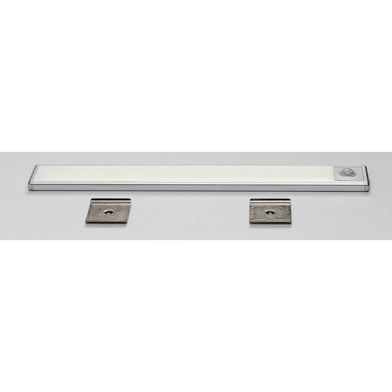 Lampa pentru blat Ivanna, în stil modern, oferă o soluție de iluminat practică și cu economie de spațiu pentru bucătărie. Lampa cu senzor de mișcare montată deasupra blatului de lucru îi ajută în mod eficient pe cei care lucrează în bucătărie. Corpul de lampă fabricat din metal și plastic de culoare argintie este completat de un abajur alb din plastic, sub care se află sursa de lumină LED încorporată aparținând clasei energetice G. Aceasta are o putere de 2 W, o luminozitate de 120 lumeni cu abajur, 150 lumeni fără abajur și o durată de viață de 25.000 ore. Sursa de lumină cu temperatura de culoare de 4000 K emite o lumină albă naturală, care asigură un efect modern și curat, fiind astfel ideală pentru efectuarea activităților din bucătărie. Senzorul PIR detectează mișcarea de la o distanță de 2–5 metri, într-un unghi de vizualizare de 100°, iar pe lângă acestea lampa este prevăzută și cu un senzor de lumină. Bateria Ivannei are o tensiune de 3,7 V și o capacitate de 1100 mAh. Dimensiunile lămpii pentru blat sunt următoarele: lățime 300 mm, înălțime 40 mm, distanța față de perete în total 10 mm, lungimea cablului 300 mm.