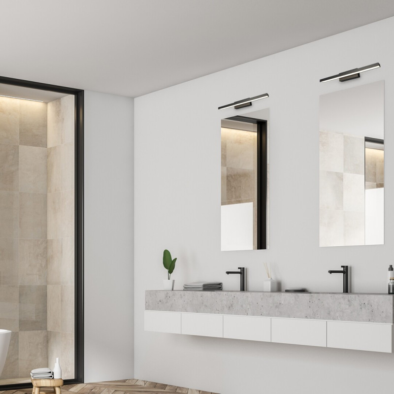 Lampa pentru baie John în stil minimalist va fi o alegere excelentă în orice baie modernă, mai ales dacă alegeți un model de culoare închisă în locul obișnuitului alb. Corpul de aluminiu al lui John este vopsit negru mat și e complimentat de un abajur alb de plastic. Această lampă arată bine mai ales deasupra chiuvetei și oglinzii, în cazul în care amplasați alte accesorii închise la culoare în jurul chiuvetei. Sursa de lumină LED încorporată a acestei lămpi pentru baie are o putere de 12W, o intensitate luminoasă de 930 de lumeni și o durată de viață de 20.000 de ore. Becul inteligent care economisește energia are o temperatură a culorii de 3.000K și, în consecință, strălucește cu o lumină alb cald. John are protecție IP44 care garantează că este protejată împotriva intruziunii obiectelor cu diametrul de până la 1 mm și împotriva stropirii cu apă din orice direcție. Dimensiunile acestei lămpi pentru baie sunt următoarele: lungime 486mm, înălțime 65mm, distanță de la perete 70mm. Oferim o garanție de 5 ani pentru acest model.
