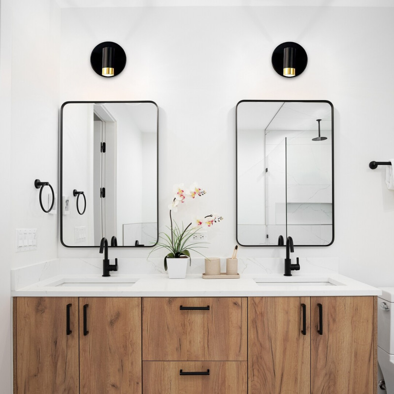 Lampa de perete Rabalux Kadir este alegerea ideală pentru cei care caută un model care combină un design simplu cu eleganța. Această lampă LED este concepută în spiritul stilului industrial, în culori negru și auriu, cu un corp cilindric și un abajur din plastic transparent. Baza decorativă are o formă rotundă, de culoare neagră, cu un diametru care depășește înălțimea totală a capului lămpii, creând un fundal elegant. Lampa de perete este echipată cu un comutator și are o sursă de lumină LED încorporată care emite o lumină albă naturală. Deoarece acest model este protejat împotriva pătrunderii particulelor solide cu un diametru de 1 mm sau mai mare și împotriva stropilor de apă din orice direcție, poate fi instalat nu doar în living, ci și în baie, fără probleme. Datorită tehnologiei LED integrate, lampa se caracterizează printr-o funcționare eficientă din punct de vedere energetic și o durată lungă de viață.