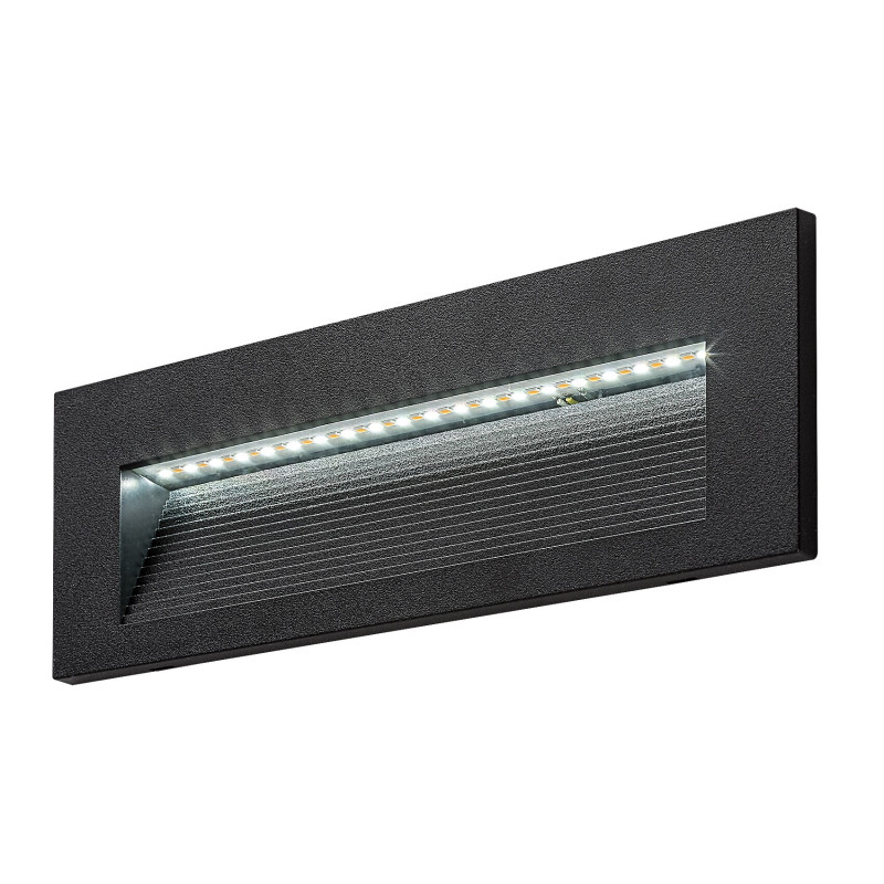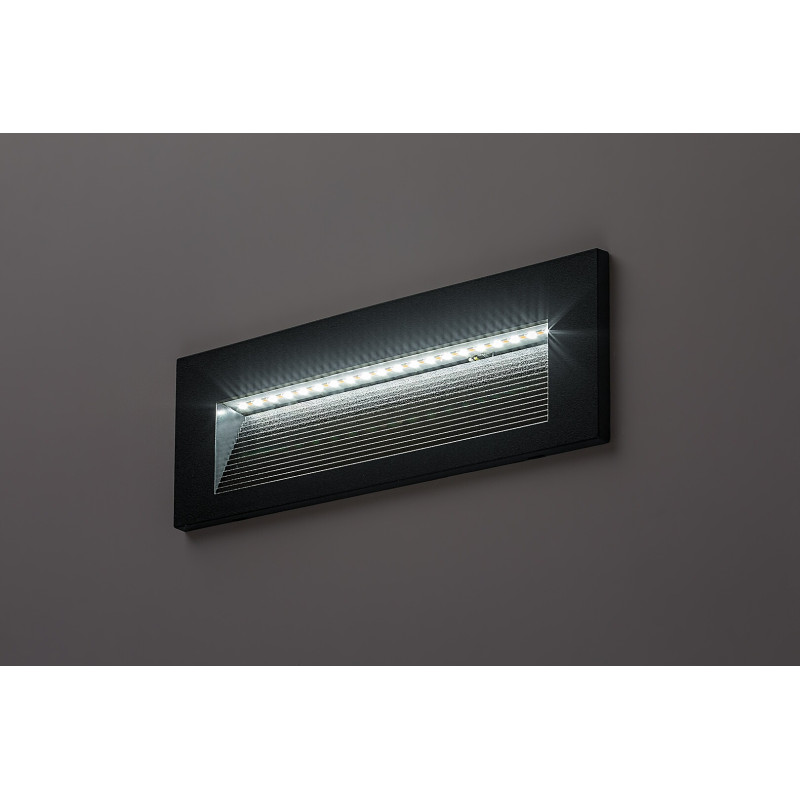 Lampa de perete încastrată pentru exterior Rábalux Kavala oferă o iluminare discretă, dar eficientă pentru trepte și zone de circulație, având un design modern și sobru. Cadrul din plastic negru, rezistent, împreună cu dispersorul translucid, oferă o lumină direcționată, fără efect de orbire – contribuind la o deplasare sigură pe timp de seară și desenând o dâră luminoasă elegantă pe perete. Sursa LED încorporată permite selectarea temperaturii de culoare – alb cald, natural sau rece – cu ajutorul unui comutator CCT, astfel încât iluminarea poate fi adaptată cu ușurință atmosferei dorite. Designul încastrat, cu profil redus, se integrează armonios în fațadă și este compatibil cu mai multe tipuri de montaj. Este o opțiune ideală pentru iluminarea treptelor exterioare, intrărilor, teraselor sau cărărilor de grădină, fiind potrivită și ca soluție modernă de iluminat pentru scări.
