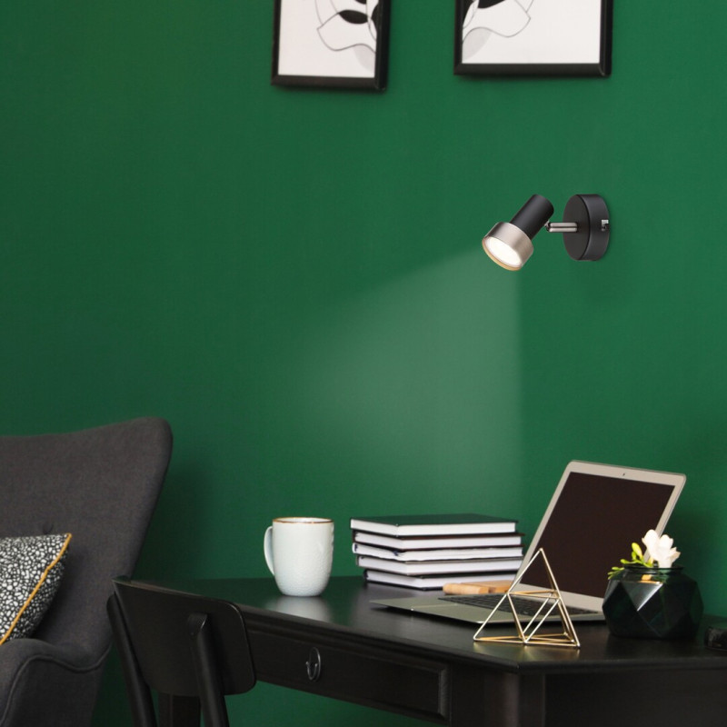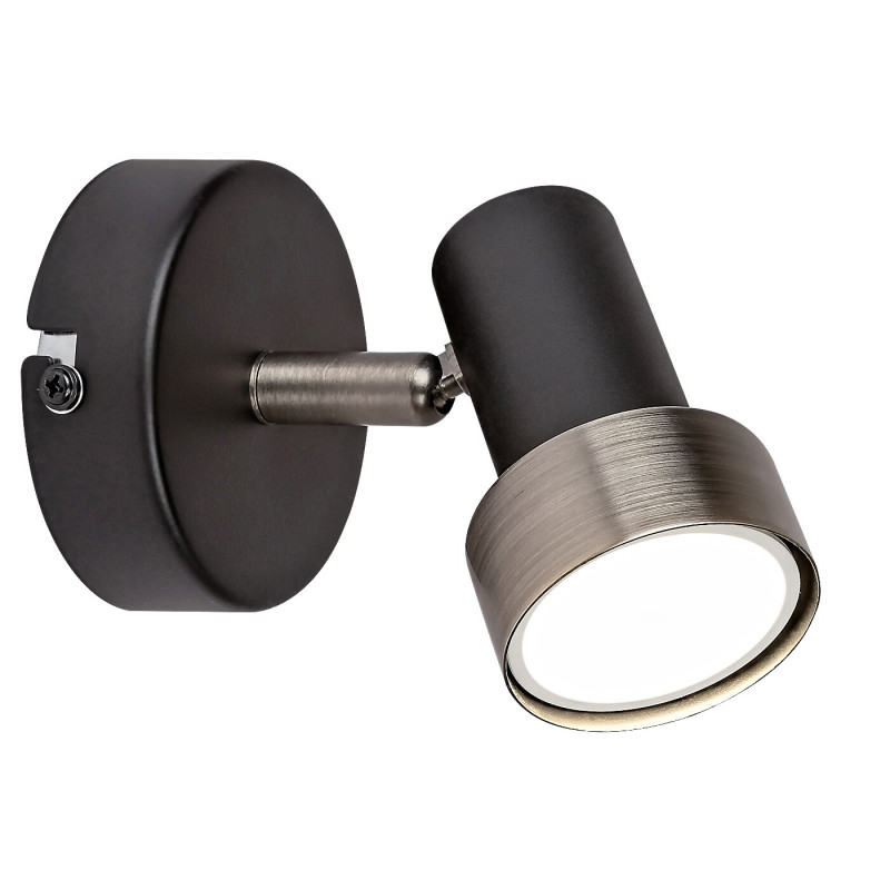Spotul de perete unic Konrad, în stil industrial, este recomandat în primul rând pentru camera de zi sau dormitor. Modelul negru mat, realizat integral din metal, este completat de un abajur argintiu și poate fi fixat pe perete cu ajutorul unei baze decorative rotunde. Datorită capului de lampă flexibil, puteți direcționa lumina acesteia după preferințe. Konrad poate fi folosit cu o singură sursă de lumină cu o putere de până la 50 W, tip soclu GU10. În funcție de gustul Dvs. și de locul de instalare, puteți alege o sursă de lumină albă caldă sau naturală. Dacă doriți să folosiți lampa în dormitor, se recomandă utilizarea unei surse de lumină albă caldă pentru a facilita crearea unei atmosfere intime și familiale. Dimensiunile spotului de perete Konrad sunt următoarele: înălțime 115 mm, diametru 55 mm, distanța față de perete 115 mm, diametru de instalare 80 mm. Acest model se livrează fără sursă de lumină.