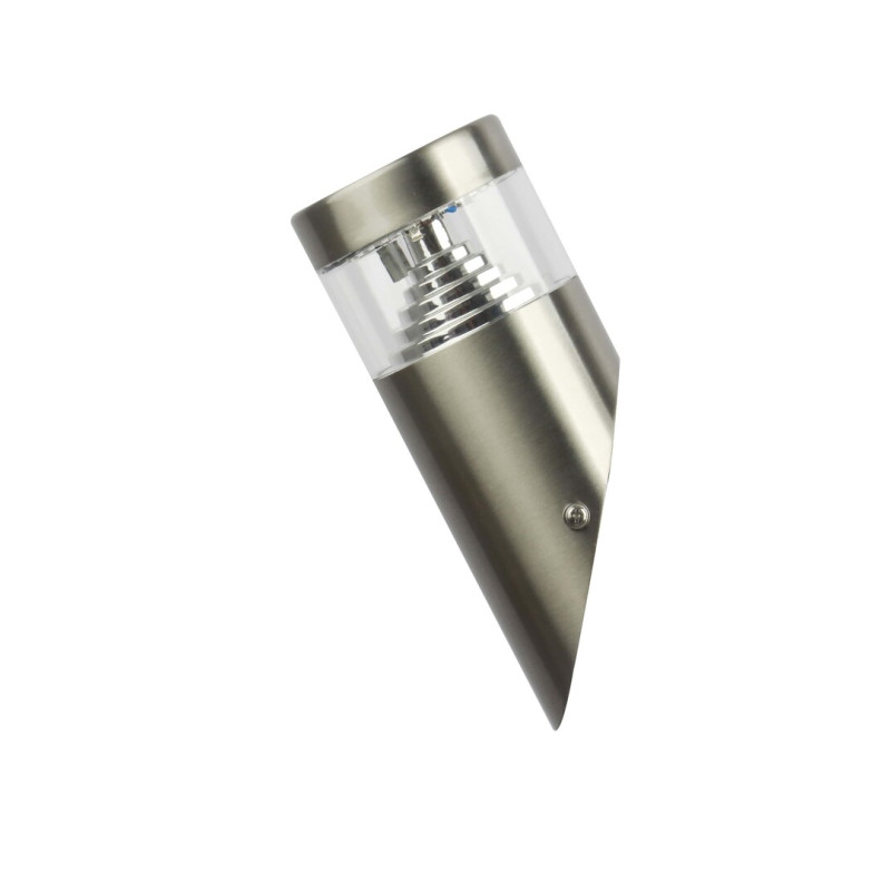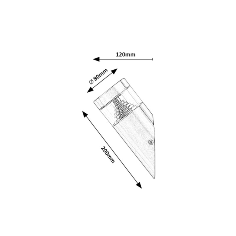Aplica de exterior Lisbon în stil modern este realizată din oțel inoxidabil și completată de un abajur din plastic transparent. Lampa care iese oblic din perete amintește de o torță. Poate fi instalată pe terasa sau oriunde pe peretele exterior al casei dumneavoastră unde este nevoie de iluminare pentru deplasarea în siguranță. Lisbon are încorporată o sursă luminoasă LED cu o putere de 7W, o intensitate luminoasă de 560 de lumeni și o durată de viață de 25.000 de ore. Becul are o temperatură a culorii de 4.000K și, în consecință, strălucește cu o lumină alb natural. Dimensiunile acestei lămpi de exterior cilindrice sunt următoarele: lățime 80mm, înălțime 200mm, distanță de la perete 120mm. Dispune de protecție IP54 care asigură protecția împotriva prafului și a altor particule și împotriva jeturilor de apă din toate direcțiile. Pentru lampa de perete de exterior Lisbon vă oferim o garanție de 5 ani.
