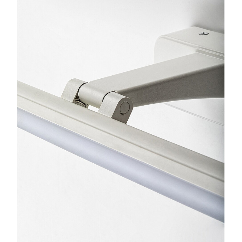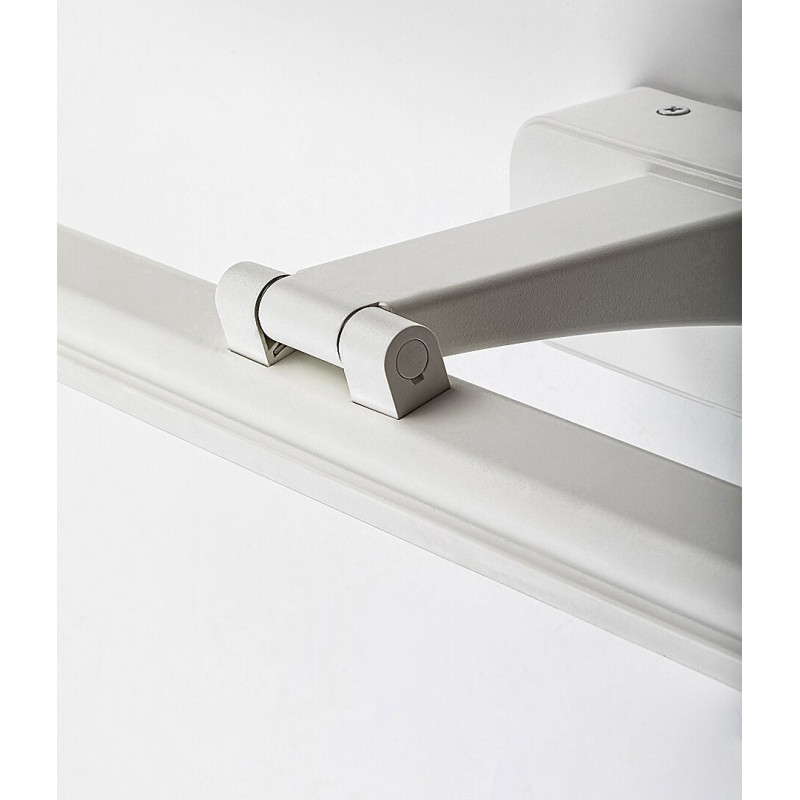 Lampa pentru iluminatul tablourilor Nabil, în stil modern, oferă o modalitate practică de a vă ilumina tablourile prețioase sau fotografiile de familie preferate din camera de zi. Lumina acestui modelul, potrivit scopului și caracterizat printr-un design discret, aproape că aduce imaginile la viață. Realizată din plastic de culoare albă mată, lampa de perete Nabil este completată de un abajur acrilic alb și poate fi fixată pe perete cu ajutorul unei baze decorative dreptunghiulare prevăzute cu colțuri rotunjite. Modelul are o sursă de lumină LED încorporată aparținând clasei energetice G, cu o putere de 15 W, o luminozitate de 1100 de lumeni cu abajur, 1750 de lumeni fără abajur și cu o durată de viață de 30.000 ore. Lampa emite o lumină albă naturală cu o temperatură de culoare de 4000 K. Dimensiunile lămpii Nabil sunt: lățime 610 mm, înălțime 60 mm, distanță față de perete 160 mm, adâncime de instalare 150 mm. Atunci când alegeți dimensiunea lămpii de iluminat tablouri trebuie să țineți cont că aceasta trebuie să fie capabilă să lumineze întreaga imagine, fără a lăsa zone de umbră.