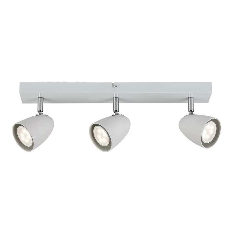 Lampa triplă de tavan Perico, în stil modern, este recomandată în primul rând pentru camera de zi, dormitor sau în camera de studiu. Lampa realizată din metal de culoare albă este completată de abajururi albe elegante și poate fi fixată pe tavan cu ajutorul unei baze decorative dreptunghiulare lungi. Capetele de lampă mobile alăturate asigură o iluminare eficientă a încăperii. Perico poate fi folosit cu trei surse de lumină, fiecare cu o putere de până la 5 W, tip soclu GU10. În funcție de gustul Dvs. și de locul de instalare, puteți alege surse de lumină albă caldă sau naturală. Dacă doriți să folosiți lampa în dormitor, se recomandă utilizarea unor surse de lumină albă caldă care facilitează crearea unei atmosfere intime și familiale, precum și relaxarea înainte de culcare. Dimensiunile lămpii triple de tavan Perico sunt următoarele: lățime 430 mm, diametrul fiecărui abajur 70 mm, distanța lămpii față de tavan 150 mm. Acest model se livrează fără surse de lumină.