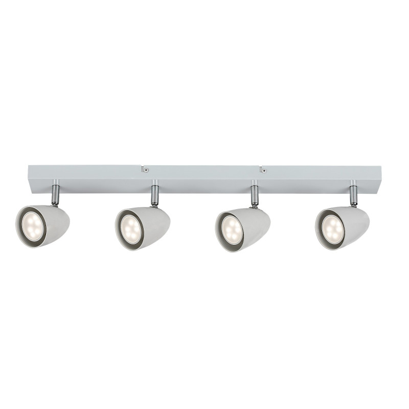 Lampa cvadruplă de tavan Perico, în stil modern, este recomandată în primul rând pentru camera de zi, dormitor sau în camera de studiu. Lampa realizată din metal de culoare albă este completată de abajururi albe elegante și poate fi fixată pe tavan cu ajutorul unei baze decorative dreptunghiulare lungi. Datorită capetelor de lampă mobile alăturate, cu acest model putem ilumina în mod efectiv și o încăpere mai spațioasă. Perico poate fi folosit cu patru surse de lumină, fiecare cu o putere de până la 5 W, tip soclu GU10. În funcție de gustul Dvs. și de locul de instalare, puteți alege surse de lumină albă caldă sau naturală. Dacă doriți să folosiți lampa în dormitor, se recomandă utilizarea unor surse de lumină albă caldă pentru a facilita crearea unei atmosfere intime și familiale. Dimensiunile lămpii cvadruple de tavan Perico sunt următoarele: lățime 600 mm, diametrul fiecărui abajur 70 mm, distanța lămpii față de tavan 150 mm. Acest model se livrează fără surse de lumină.