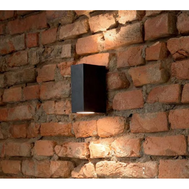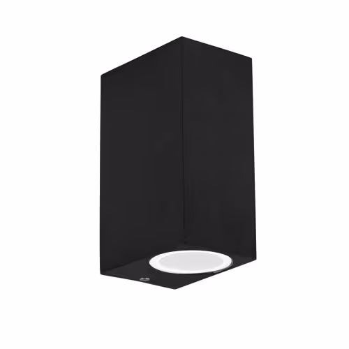 - spotul cubic UP AP2 Negru din aluminiu finisat negru are abajur de sticla pirex dublu satinat, IP44