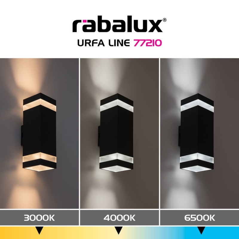 Lampa de perete de exterior Rábalux Urfa Line are un design modern, cu un corp dreptunghiular în nuanță antracit și o abajur cu margine transparentă, fiind un element decorativ elegant și discret pentru fațadă. LED-ul încorporat emite lumină atât în sus, cât și în jos, creând un joc de lumini spectaculos pe perete — o soluție decorativă și funcțională în același timp pentru iluminarea intrării, terasei, balconului sau accesului spre garaj. Datorită comutatorului pentru selectarea temperaturii de culoare, lumina poate fi ajustată cu ușurință în funcție de ambient și de starea dorită, de la tonuri calde și intime la unele mai clare și pronunțate. Construcția durabilă, rezistentă la intemperii, împreună cu designul modern și simplu, o fac potrivită pentru clădirile contemporane sau minimaliste, adăugând un plus de stil fațadei.