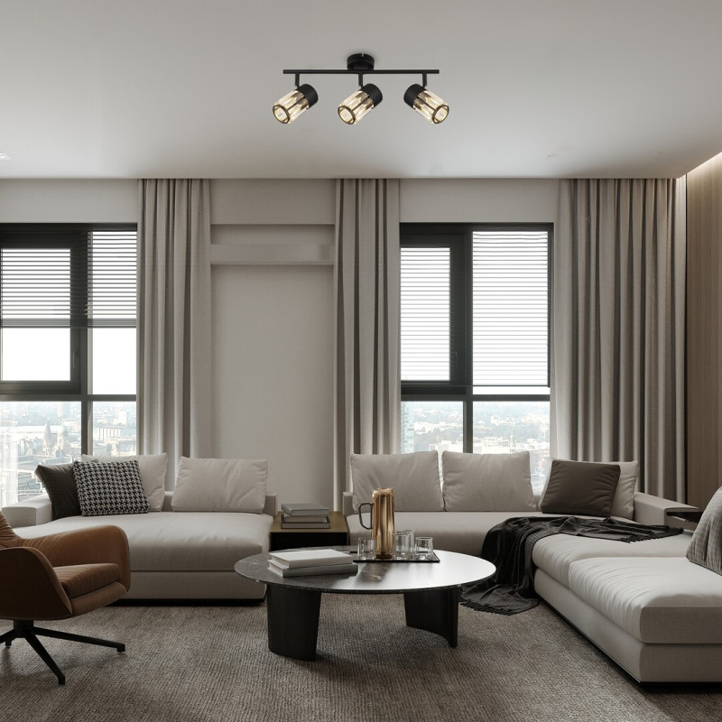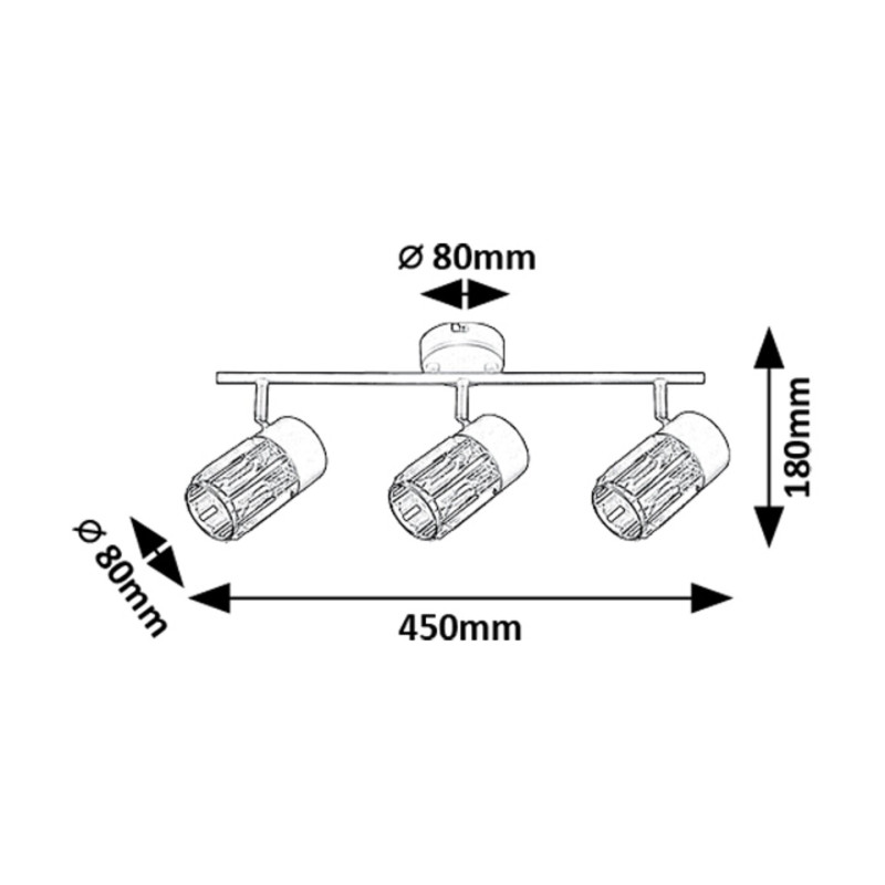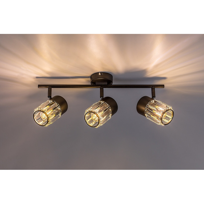 Rabalux Venaro spot de tavan cu 3 becuri este recomandat celor care caută o lampă în stil clasic, care poate fi utilizată în multe camere ale locuinței lor. Spotul este realizat din metal negru și poate fi fixat pe tavan prin intermediul unei baze decorative mici și rotunde. Capetele lămpii sunt aranjate în linie, unul lângă altul, pe o bară de susținere atașată la baza decorativă. Abajururile, realizate din sticlă, au o formă cilindrică și o suprafață asemănătoare cristalului. Capetele lămpii pot fi rotite datorită articulațiilor cu bilă, astfel încât lumina să fie direcționată întotdeauna conform nevoilor tale. Acest model este o alegere ideală nu doar pentru living și dormitor, ci și pentru bucătărie și sufragerie. Poate fi utilizat cu trei becuri, fiecare cu o putere de până la 15 W. Tipul de soclu este E14. Spotul de tavan este livrat fără surse de lumină.