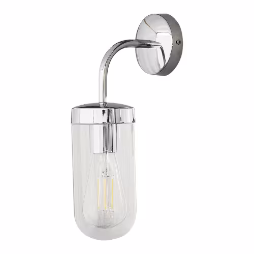 Lampa de baie modernă Yago este recomandată în primul rând pentru a fi instalată deasupra oglinzii, completând chiuveta, dar o puteți amplasa și pe o terasă sau pe orice perete exterior al casei. Modelul constă dintr-un corp de iluminat din aluminiu, cromat și un abajur cilindric, din sticlă transparentă, care poate fi folosit cu un bec de maximum 60 W. Tipul de soclu este E27. Lampa Yago poate fi montată pe perete cu ajutorul unei baze decorative rotunde, cromate. Protecția IP44 a acestei lămpi asigură protecția împotriva penetrării obiectelor de până la 1 mm în diametru și împotriva stropirii apei din orice direcție. Dimensiunile aplicei pentru baie sunt: lățime 97 mm, înălțime 325 mm, lungime 170 mm, diametru de montare 90 mm. Acest model este furnizat fără sursă de iluminat.