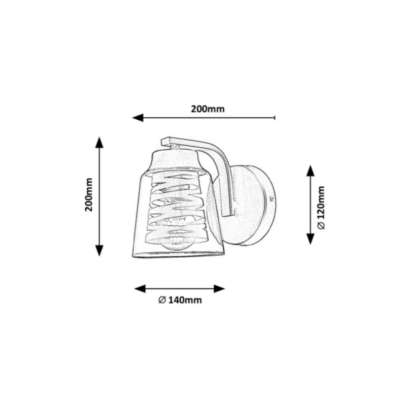 Dimensiunile lămpii de perete sunt următoarele: diametru abajur 140mm, înălțimea lămpii este 200mm, distanță de la perete 200mm, diametrul instalației 120mm.