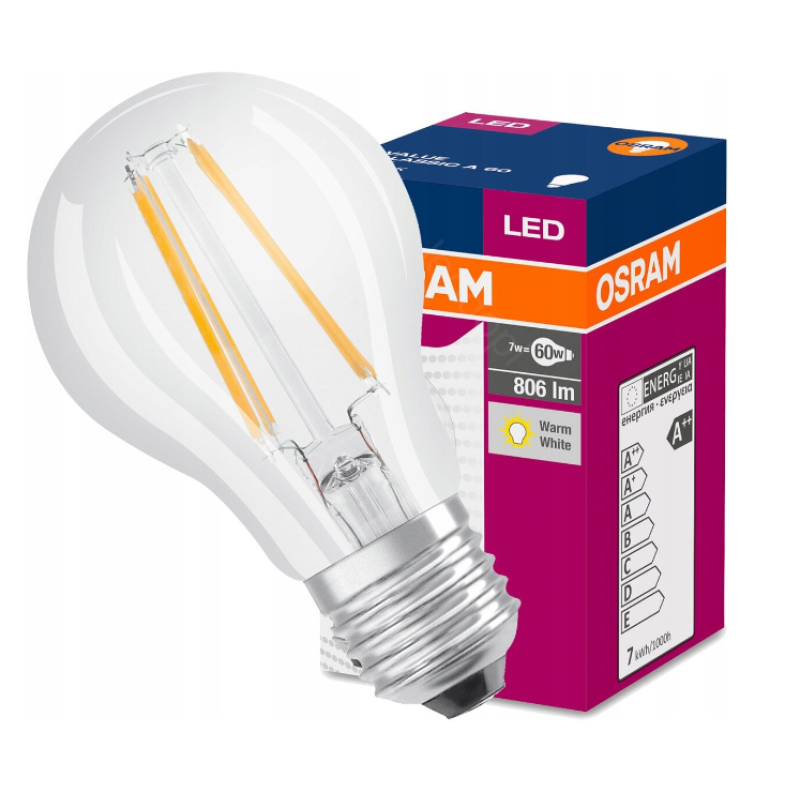 Bec LED filament decorativ A60 E27 7W 2700K Osram