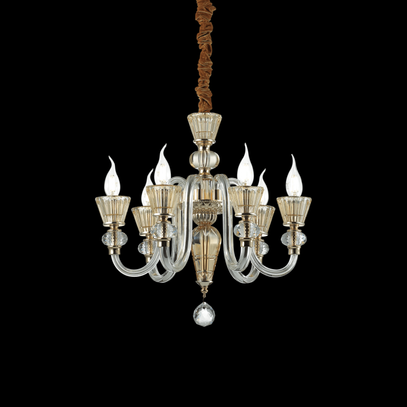 - cadru metalic cu finisaj auriu, sticla suflata cu elemente decorative de cristal chihlimbar