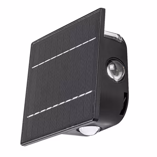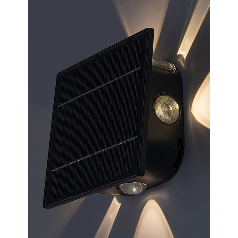 Lampa solară de exterior Emmen, în stil modern, se recomandă pentru terasă sau peretele exterior al casei tuturor celor care sunt în căutarea unui model de exterior inteligent care să satisfacă toate nevoile. Emmen este fabricat în întregime din plastic de culoare neagră, cu un abajur transparent, fiind echipat cu un senzor de lumină care ajustează luminozitatea lămpii în funcție de condiții. În plus, lampa este dimabilă, astfel încât îi putem regla singuri luminozitatea cu ajutorul unui comutator. Sursa de lumină LED încorporată are o putere de 0,5 W, o luminozitate de 50 lumeni cu abajur, 60 lumeni fără abajur, și o durată de viață de 30.000 ore. Temperatura de culoare poate fi selectată: cu ajutorul comutatorul putem seta 3000 sau 6000 K. Lampa are, de asemenea, o funcție de memorie reglabilă prin comutator. Dimensiunile lămpii Emmen sunt următoarele: lățime 130 mm, înălțime 130 mm, distanța față de perete 70 mm. Bateria are o tensiune de 3,7 V și o capacitate de 1300 mAh. Protecția IP54 garantează că lampa este protejată împotriva prafului, precum și împotriva stropirii cu apă din orice direcție. Intervalul ideal de temperatură de funcționare: -10 °C până la 50 °C.
