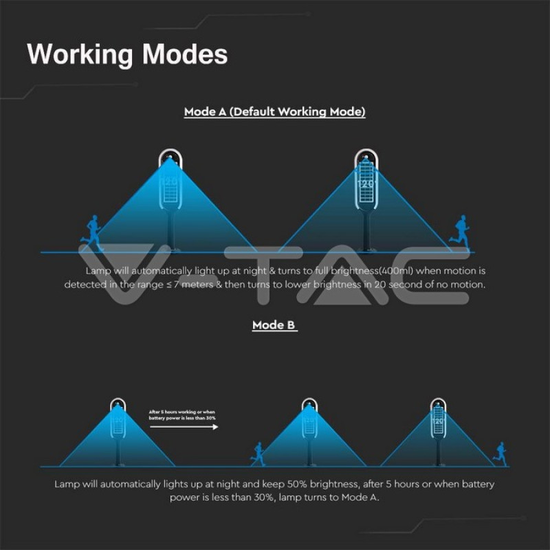 - Luminozitate completă până la 400 de lumeni atunci când este detectată mișcare în intervalul < 7 metri
