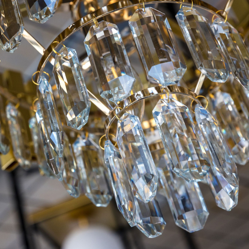Candelabrul Charmant KL115002 este un corp de iluminat pentru interior, care va aduce un plus de stralucire si eleganta in locuinta dumneavoastra. Combinatia de auriu metalic si stralucirea ornamentelor din sticla, creeaza jocuri de lumini adaugand un strop de stralucire si opulenta spatiului in care e amplasat acesta. Candelabrul se incadreaza perfect in spatiile amenajate in stil baroc, contemporan sau fusion, avand un efect decorativ inedit, indraznet, dar totusi aristocratic.