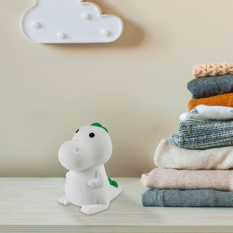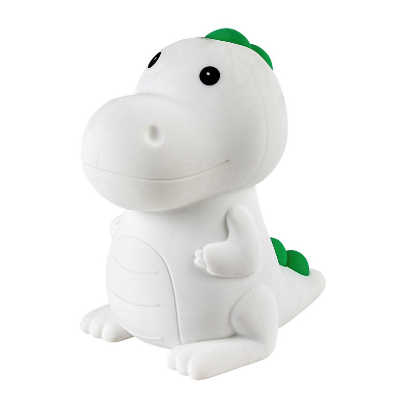 Cu o mulțime de caracteristici suplimentare, lampa pentru copii Dinoo va fi un accesoriu în camera oricărui băiețel iubitor de dinozauri. Lampa multicoloră din plastic cu o atingere delicată este completată de un abajur multicolor din silicon. Lumina de noapte cu posibilitate de luminare RGB este dimabilă cu un comutator tactil, adică luminozitatea acesteia poate fi ajustată în funcție de necesități. Lampa poate fi încărcată prin intermediul unui cablu USB, bateria are o tensiune de 3,7 V și o capacitate de 1200 mAh. Timpul de încărcare este de 2,5 ore, iar timpul de funcționare de 6– 10 ore. Lampa pentru copii cu funcție de iluminare de noapte are o sursă de lumină LED încorporată cu o putere de 0,45 W, o luminozitate de 30 de lumeni cu abajur, 55 de lumeni fără abajur, și o durată de viață de 10 000 de ore. Sursa de lumină are o temperatură de culoare de 3000 K, și în mod corespunzător, emite lumină albă caldă. Cu ajutorul acesteia putem crea o atmosferă intimă și primitoare în cameră, care este ideală pentru pregătirea de culcare și relaxare. Dimensiunile lămpii decorative Dinoo sunt următoarele: înălțime 140 mm, lățimea 130 mm, lungimea cablului 500 mm.
