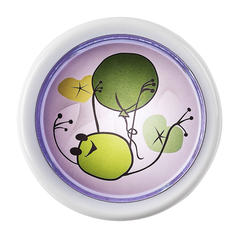 Lampa cu apăsare Rabalux Froggo este un model proiectat de Rabalux. Este ideală pentru cei care caută o lampă de veghe ușor de utilizat și, în același timp, stilată pentru camera copiilor. Lampa are o formă rotundă, este realizată complet din plastic și prezintă un motiv distractiv cu broscuță și balon pe un fundal alb. Are o sursă de lumină LED încorporată, cu o durată de viață excepțională. Lampa emite o lumină albă rece, facilitând orientarea în cameră dacă ceva îl trezește pe cel mic în timpul nopții. Lampa de veghe se aprinde și se stinge cu ușurință prin simpla apăsare a abajurului, astfel încât nu este nevoie să cauți întrerupătorul pe întuneric. Lampa pentru copii poate fi utilizată cu două baterii AA. Lampa cu apăsare pentru camera copiilor este livrată fără baterii.