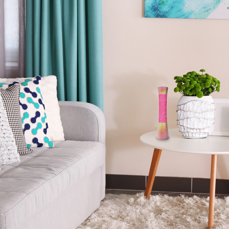 Lampa decorativă subțire Minka este o adăugare drăguță și veselă la camera de zi, dormitorul sau camera copiilor. Această lampă cu lavă și culoarea frumoasă roz este realizată din plastic și sticlă și poate fi folosită cu un singur bec de maximum 20 W. Tipul de soclu este GY6.35. Minka este un model sigur pentru copii, proiectat de Rabalux. Abajururile rozalii și modelul cu inimioare ale corpului de iluminat, alături de cele două decorațiuni sclipitoare roz care curg în interiorul lămpii vor face plăcere chiar și celor mai tinere domnișoare, cu siguranță admirându-le înainte de culcare. Totodată, și adulții se pot bucura de atmosfera magică creată de această lampă cu lavă în orele serii petrecute în camera de zi sau dormitor. Înălțimea lămpii Minka este de 395 mm, diametrul 110 mm. Acest model este furnizat cu sursă de iluminat și adaptor.