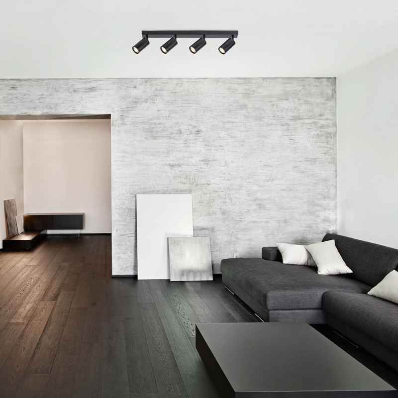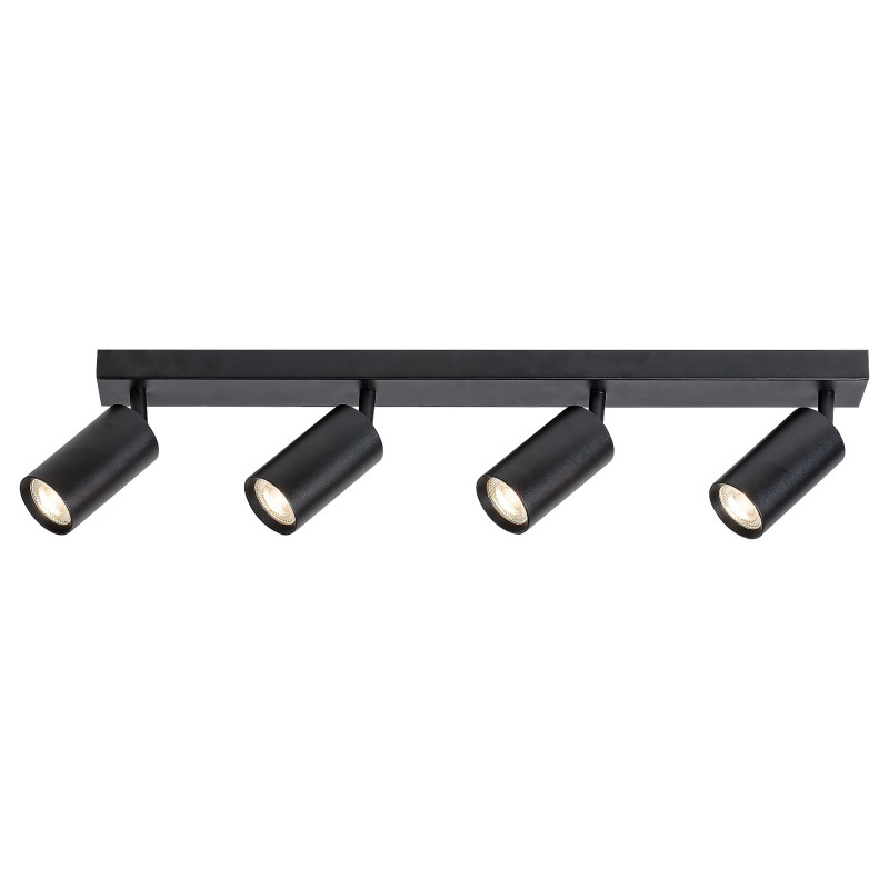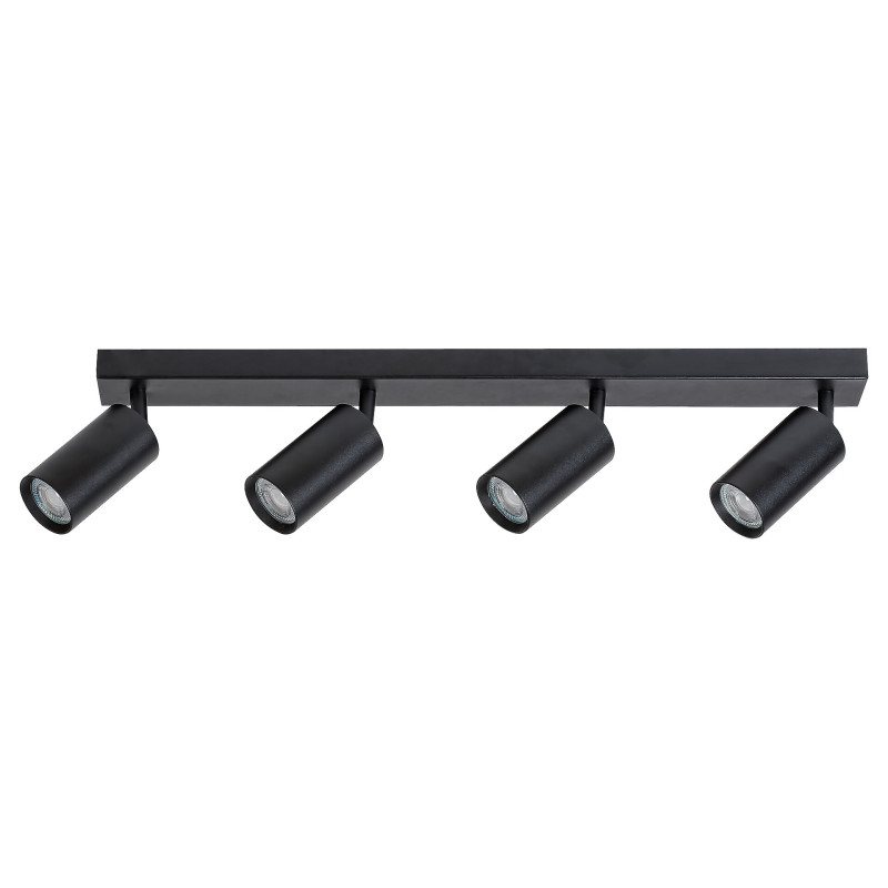 Spotul Solo cu 4 becuri în stil minimalist va fi o piesă practică din mobilierul modern al sufrageriei sau dormitorului Dvs. Acest model negru este realizat integral din metal și este completat de abajururi cilindrice și o bază decorativă dreptunghiulară alungită. Acest spot poate fi folosit cu patru becuri, fiecare cu o putere de până la 25W. Tipul de soclu este GU10. În funcţie de preferinţe, puteţi alege becuri care emit lumină albă caldă sau naturală. Datorită capetelor flexibile ale lămpii puteți direcționa lumina lămpii în funcție de nevoile Dvs, iluminând astfel întreaga cameră în mod eficient. Dimensiunile spotului Solo cu 4 becuri sunt următoarele: lățimea 600mm, înălțimea 140mm, diametrul fiecărui abajur este de 55mm, distanța lămpii de tavan este de 135mm. Acest model este furnizat fără surse de lumină.